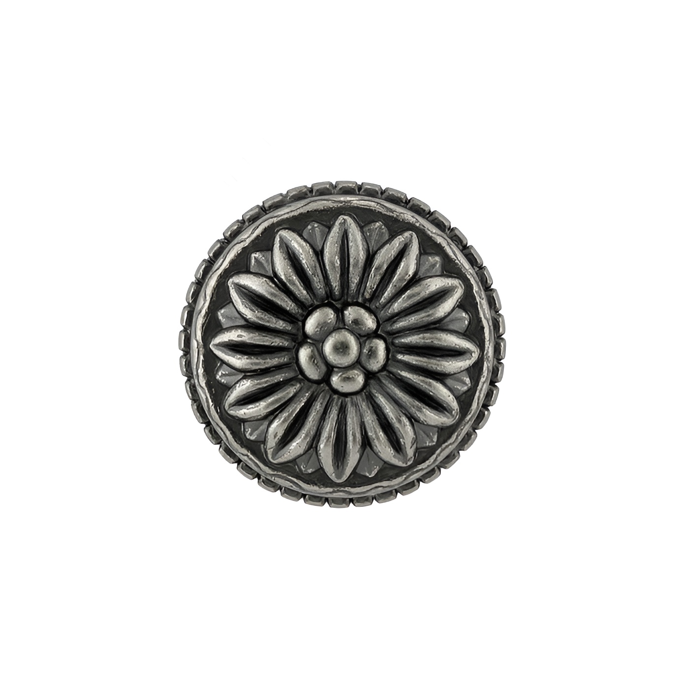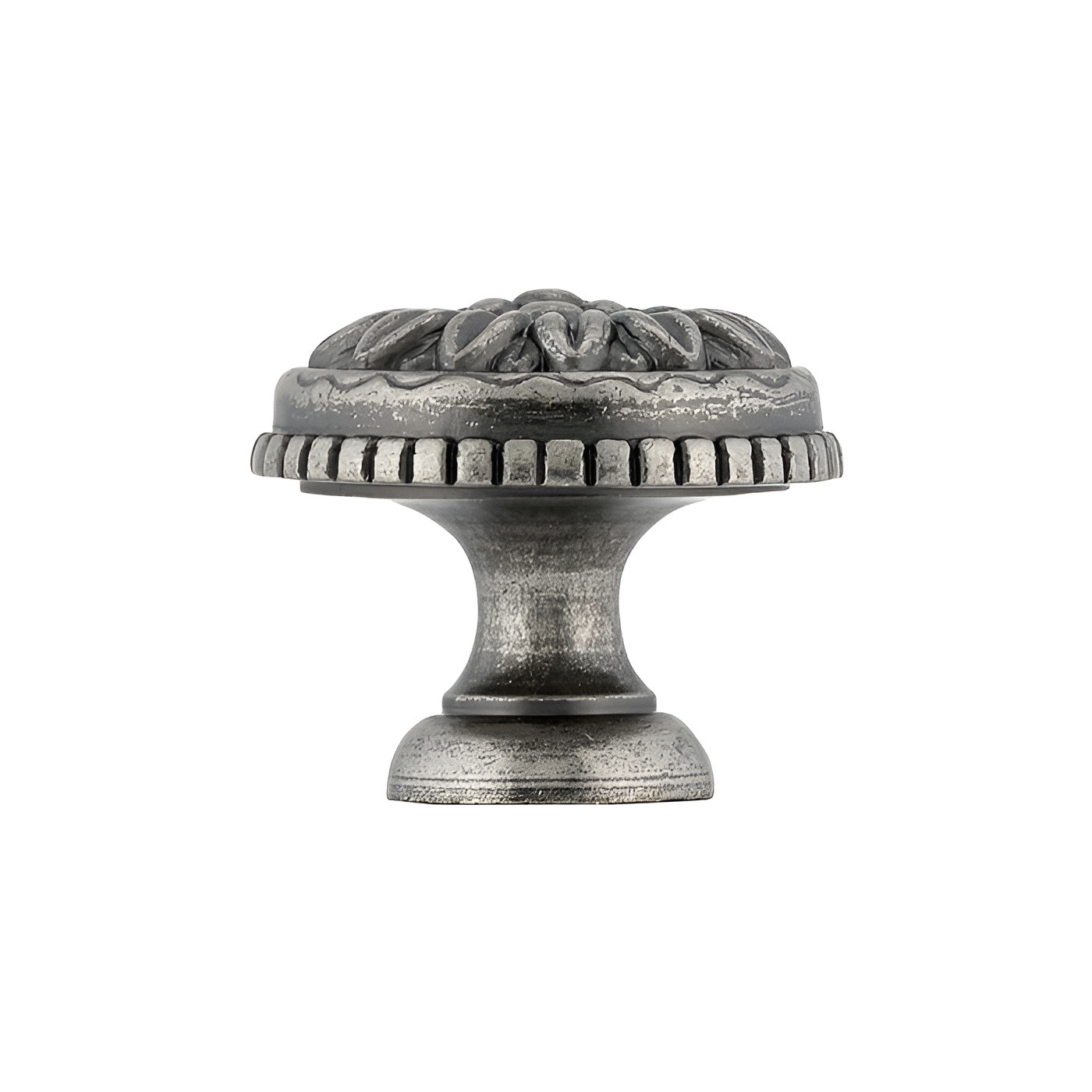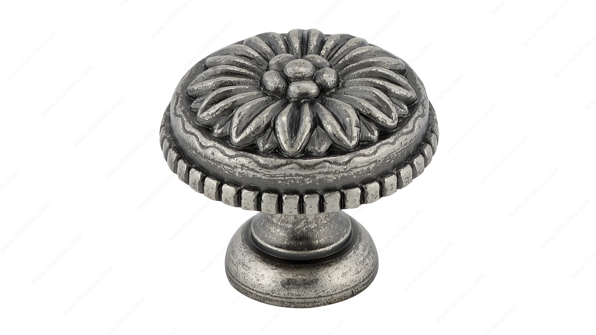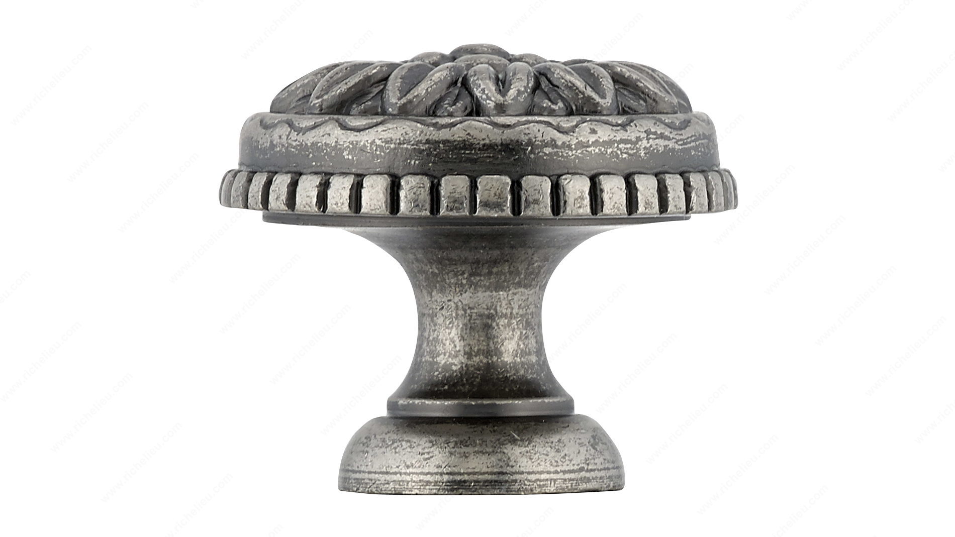 Richelieu BP04330142 Traditional Brass Knob - 0433 brings an elegant classic touch to your furniture with its exquisite design from the Louis XV Collection. This round door knob, with an overall diameter of 1 3/16 inches and a projection of 31/32 inches, is perfect for enhancing the aesthetic appeal of cabinets, doors, or drawers in any traditional setting. Crafted from durable brass and finished in a sophisticated pewter tone, this knob seamlessly blends style and functionality. The traditional design not only adds visual interest but also ensures a comfortable grip, making it easy to open and close your furniture pieces. The knob comes complete with an 8/32 inch screw, simplifying installation and ensuring a secure fit. Available for UPS shipping, the Richelieu BP04330142 is a smart choice for homeowners and professionals looking to elevate their decor with timeless elegance. The combination of gray and chrome accents beautifully complements various interior styles, providing a cohesive look throughout your space. Invest in this stunning piece to enhance your furniture's charm while enjoying the quality and reliability that Richelieu is known for. Whether for a renovation project or new construction, this knob is sure to impress.
