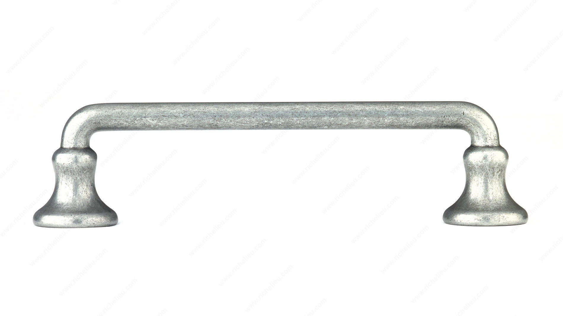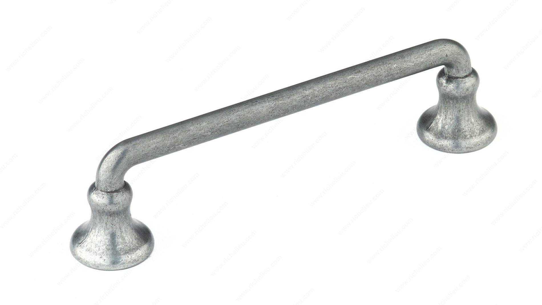 Richelieu BP0874142 Traditional Metal Pull - 0874 adds a touch of elegance to your kitchen and bathroom cabinets. This classic handle features clean lines and bell-shaped ends, making it an effortless way to elevate your home décor. Crafted from durable metal, it showcases a stunning pewter finish (#142), perfectly complemented by a modern gray and chrome color scheme. With an overall length of 4 19/32 inches and a center-to-center measurement of 3 25/32 inches, this pull is designed to fit seamlessly into various cabinetry styles. Its projection of 1 1/8 inches provides a comfortable grip, while the width of 13/16 inches ensures a sleek profile that won’t overpower your cabinetry. Easy to install, the Richelieu BP0874142 comes with included 8/32 inch screws, allowing for a straightforward setup. Its traditional design makes it suitable for both contemporary and classic interiors, enhancing the aesthetic appeal of any space. Whether you’re renovating your kitchen or updating your bathroom, this pull is the ideal choice for homeowners and building professionals seeking quality and style. Upgrade your cabinetry with this timeless piece and see the transformation in your home's overall design.