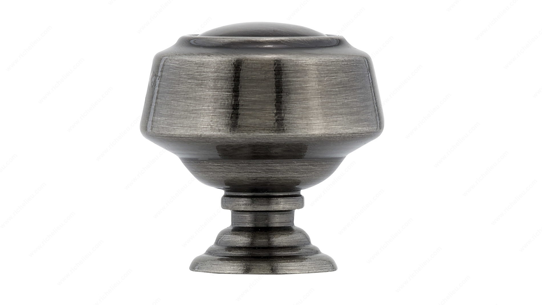 Richelieu BP0875242 Traditional Metal Knob - 0875 brings timeless elegance to your furniture and cabinetry. This beautifully crafted knob features a delicate circular design that seamlessly complements both classic and contemporary styles. Finished in brushed pewter, it adds a sophisticated touch while ensuring durability and long-lasting appeal. Measuring 1 3/16 inches in diameter, this knob is perfectly sized for a variety of applications, making it an ideal choice for kitchen cabinets, dressers, and more. The gray and chrome color palette enhances its versatility, allowing it to blend effortlessly with different decor themes. Whether you're upgrading existing fixtures or designing a new space, this knob provides both functionality and aesthetic charm. The Richelieu BP0875242 is made from high-quality metal, ensuring a sturdy grip and reliable performance. Each knob comes with an 8/32 inch screw included for easy installation, making it a hassle-free addition to your project. With its traditional style, this knob embodies craftsmanship that will elevate the look of any room. Choose Richelieu for a perfect fusion of style and quality in your home or professional space.