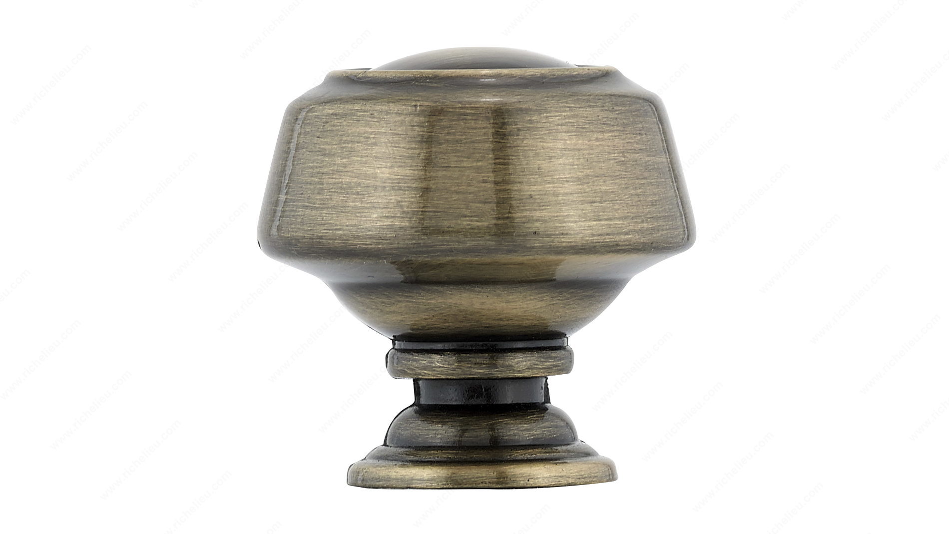 Richelieu BP0875AE Traditional Metal Knob - 0875 brings a timeless elegance to your furniture and cabinetry with its delicate circular design. Crafted from durable metal, this knob features an Antique English finish that beautifully complements a variety of interior styles, adding a classic touch to your decor. Measuring 1 3/16 inches in both diameter and projection, it is perfectly sized for comfortable grip and functionality. The rich yellow and brass tones of the finish not only enhance its aesthetic appeal but also ensure durability and longevity, making it a smart choice for both residential and professional applications. Installation is straightforward, with an included 8/32 inch screw, making it easy to upgrade your space without extensive renovations. Ideal for traditional settings, the BP0875AE knob is well-suited for kitchen cabinets, dressers, and other furniture pieces that require a touch of sophistication. Whether you're a building professional or a discerning homeowner, this knob will elevate your project with its refined style and quality craftsmanship. Choose Richelieu for your hardware needs, and experience the perfect blend of form and function in every detail.