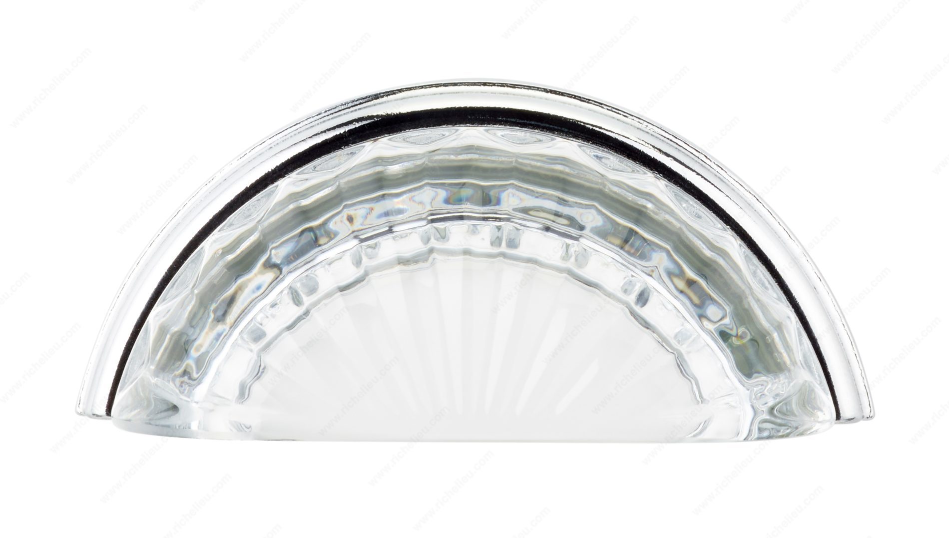 Richelieu BP1008314011 Eclectic Crystal Pull - 10083 offers a stunning blend of luxury and functionality, perfect for enhancing the aesthetic of your kitchen or bathroom cabinets. This exquisite cup pull is designed to suit classic styles, featuring a captivating combination of gray and chrome tones alongside clear crystal and glass accents. With a center-to-center measurement of 3 inches, it seamlessly fits in with standard cabinetry layouts, while the overall dimensions of 3 21/32 inches in length, 1 21/32 inches in width, and 1 21/32 inches in projection ensure a striking presence. Crafted from durable metal and adorned with crystal and glass, this pull not only provides a sophisticated touch but also ensures longevity and easy maintenance. Included with the pull is an 8/32 inch screw for straightforward installation, making it an ideal choice for both professional builders and DIY enthusiasts. Packaged in a convenient bag, the Richelieu Eclectic Crystal Pull is part of a new collection that invites elegance into any space. Elevate your cabinetry with this stylish and functional accessory that embodies both classic charm and modern allure.