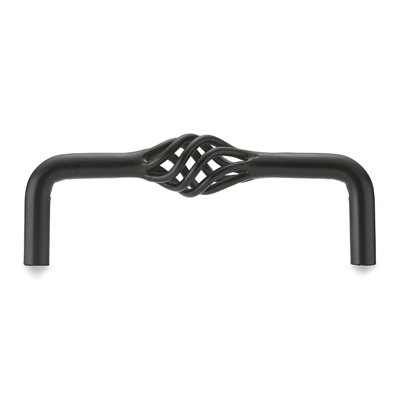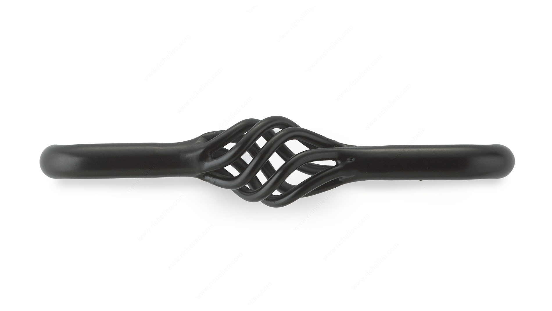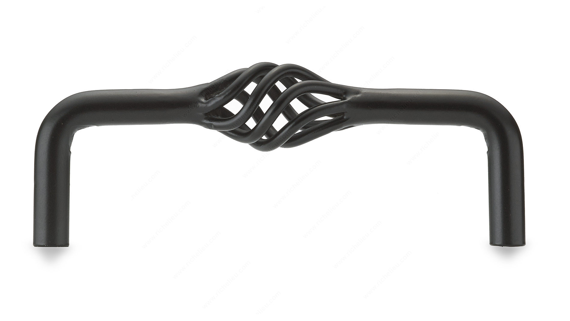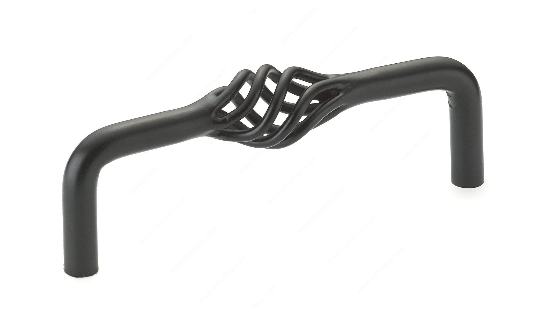 Richelieu BP106100900 Traditional Metal Pull - 106 embodies timeless elegance with its exquisite birdcage handle design. Crafted from durable steel and finished in a sophisticated matte black, this pull is perfect for enhancing the aesthetic of both classic and contemporary interiors. With an overall length of 4 11/32 inches, a center-to-center measurement of 4 1/32 inches, and a projection of 1 9/16 inches, it offers both style and functionality. The traditional style of this pull seamlessly integrates into any décor, making it an ideal choice for kitchen cabinets, drawers, or furniture. Its delicate detailing not only adds visual interest but also provides a comfortable grip, ensuring ease of use. The pull is designed to ship conveniently via UPS, ensuring that your project stays on schedule. Included with the product are 8/32 inch screws for easy installation, making it a hassle-free addition to your home improvement endeavors. With a width of 13/16 inches, this pull is the perfect size for various applications, delivering a refined touch to any space. Whether you're updating your kitchen or enhancing your cabinetry, the Richelieu BP106100900 Traditional Metal Pull is a stylish and practical choice.