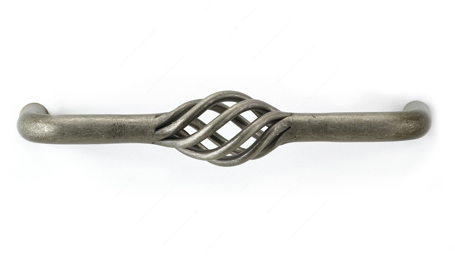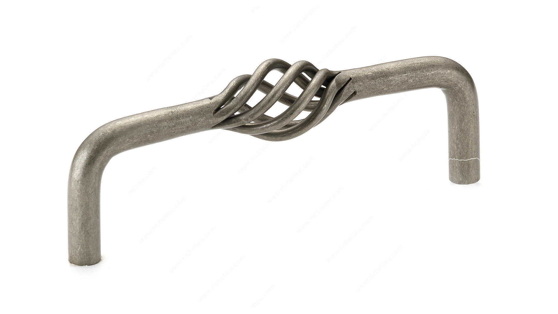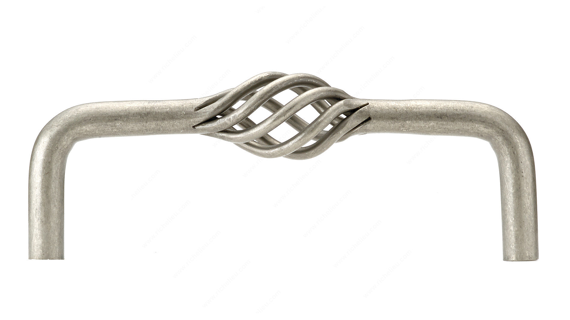 Richelieu BP106100908 Traditional Metal Pull – 106 is an exquisite addition to your elegant décor, featuring a beautifully crafted birdcage handle that combines functionality with classic aesthetics. Designed for those who appreciate traditional style, this pull is made from durable steel, ensuring longevity and robust performance. With an overall length of 4 11/32 inches and a center-to-center measurement of 4 1/32 inches, this pull is perfectly sized for a variety of cabinet applications. The natural iron finish, complemented by gray and chrome accents, adds a touch of sophistication while seamlessly fitting into rustic or contemporary interiors alike. Measuring 1 9/16 inches in projection and 13/16 inches in width, the BP106100908 provides a comfortable grip, making it easy to open drawers and cabinets. Installation is hassle-free, as it comes with 8/32 inch screws included, ensuring a secure fit. This traditional pull not only enhances the visual appeal of your furniture but also promises practical functionality. Whether you're updating your kitchen, bathroom, or any living space, the Richelieu Traditional Metal Pull is the ideal choice for professionals and homeowners seeking a blend of style and reliability.