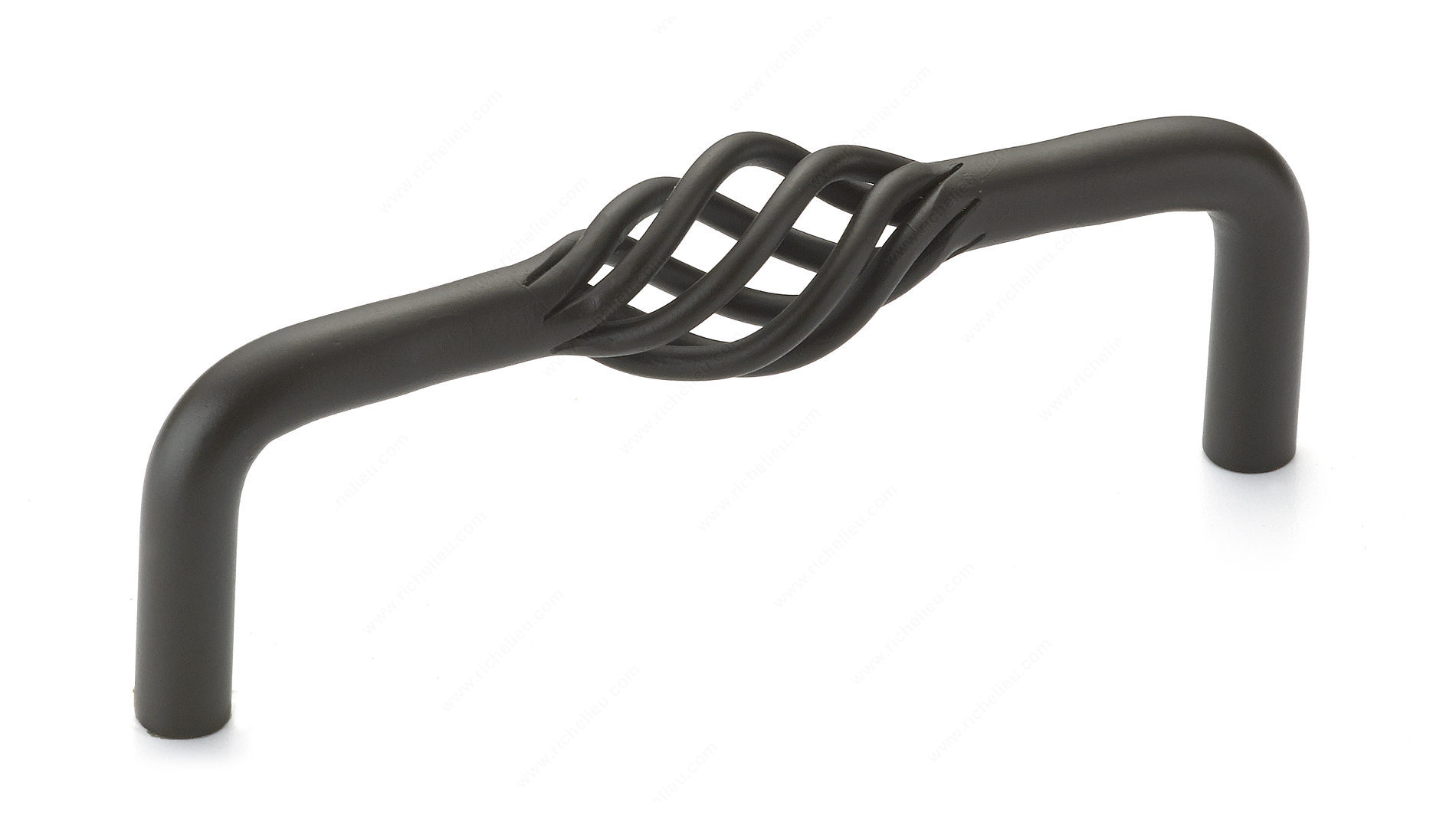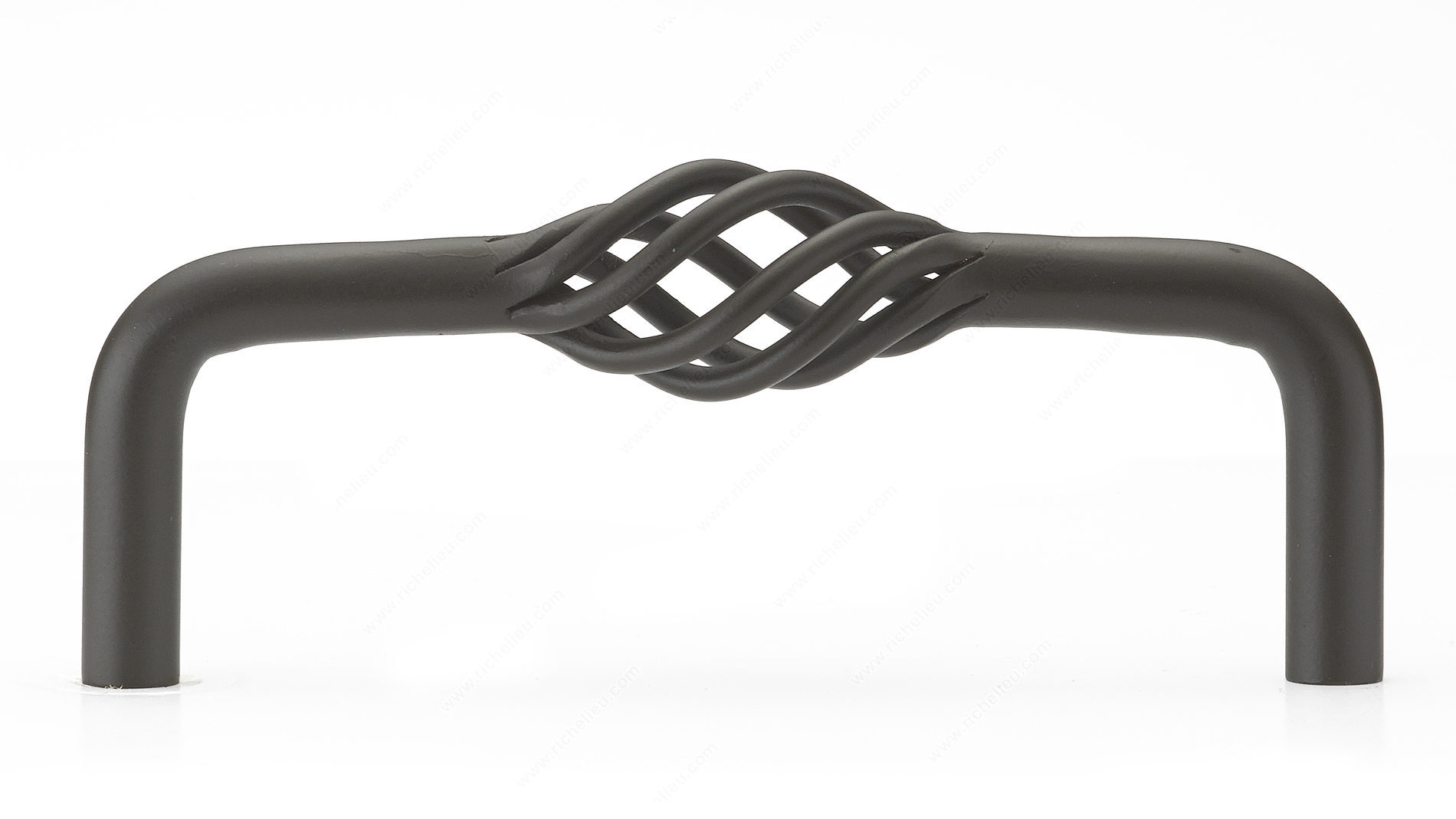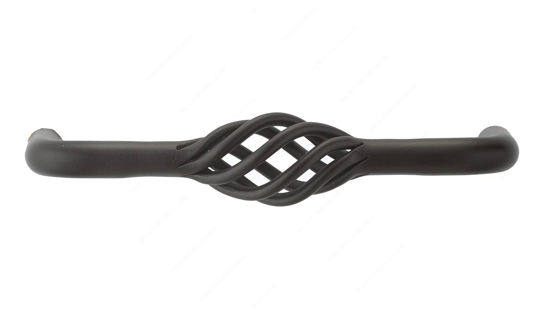 Richelieu BP10696ORB Traditional Metal Pull - 106 combines timeless elegance with intricate craftsmanship, making it an ideal addition to your refined décor. Featuring a charming birdcage handle, this metal pull is designed to enhance both functionality and aesthetic appeal in your home. Crafted from durable steel, the pull showcases an oil-rubbed bronze finish that adds a touch of warmth and sophistication. With overall dimensions measuring 4 3/32 inches in length and a projection of 1 9/16 inches, it is perfectly sized for cabinets or drawers. The center-to-center measurement of 3 25/32 inches makes it easy to replace existing hardware without additional modifications. The traditional style of this pull is well-suited for rustic and classic interior designs, while the subtle brown and bronze tones harmonize beautifully with various color palettes. Installation is a breeze, thanks to the included 8/32 inch screws, ensuring a secure fit. Whether you are updating your kitchen, bathroom, or furniture, the Richelieu BP10696ORB Traditional Metal Pull - 106 is a refined choice that reflects your attention to detail and commitment to quality. Elevate your space with this exquisite hardware that balances style and practicality perfectly.