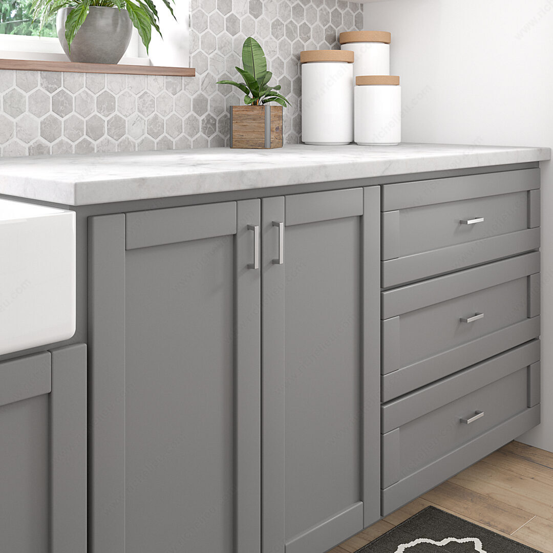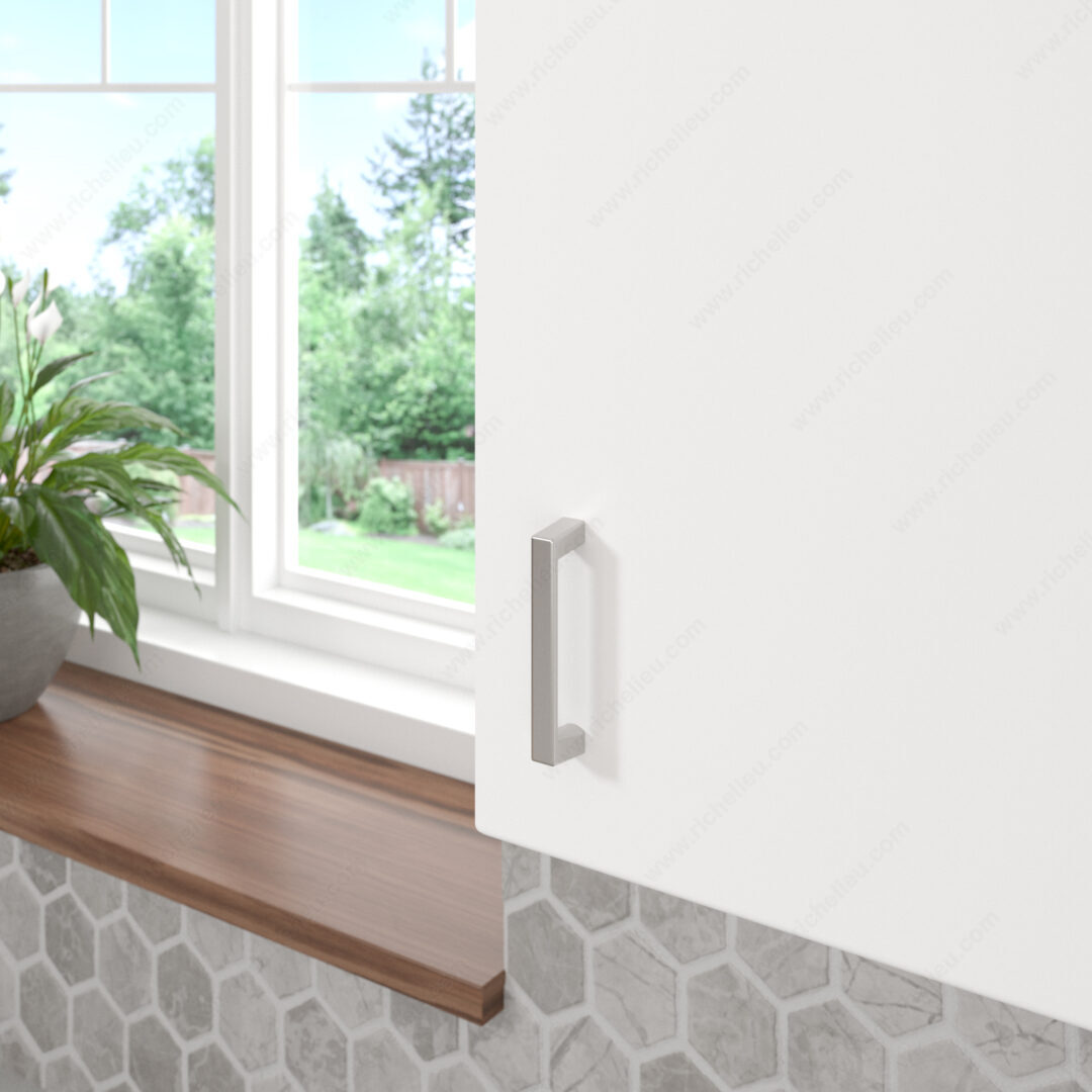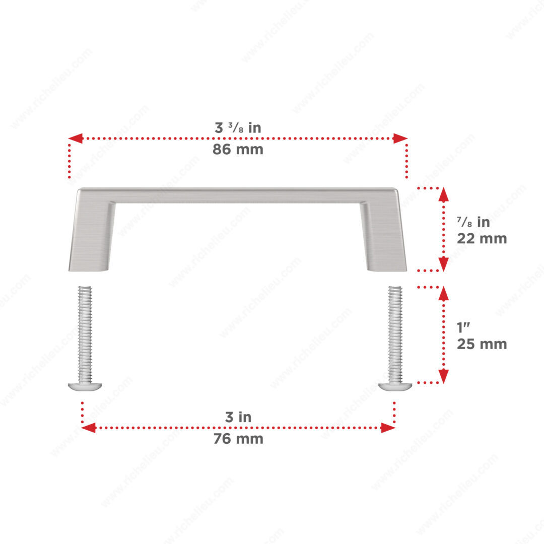 Richelieu BP10743195 Modern Metal Pull - 107 offers a sleek and contemporary design that enhances the aesthetic of any cabinet door or drawer front. With its straight and simple lines, this pull embodies modernity while ensuring practicality for both residential and commercial applications. Crafted from durable Zamak, the pull features a brushed nickel finish that adds a subtle touch of elegance, complemented by its gray and chrome color scheme. Measuring 3 3/8 inches in overall length, with a width of 7/16 inches and a projection of 7/8 inches, it provides a comfortable grip while maintaining a streamlined appearance. The center-to-center measurement is 3 inches, making it easy to install in various applications. Each pull comes with an 8/32 inch by 25 mm screw for simple installation. With a thickness of 5/32 inches, this pull not only looks good but is also robust enough to withstand daily use. Whether you're upgrading cabinetry in a kitchen, bathroom, or office space, the Richelieu BP10743195 Modern Metal Pull is the ideal choice for those seeking sophistication and functionality. Its versatile design is sure to complement any décor while offering lasting performance.