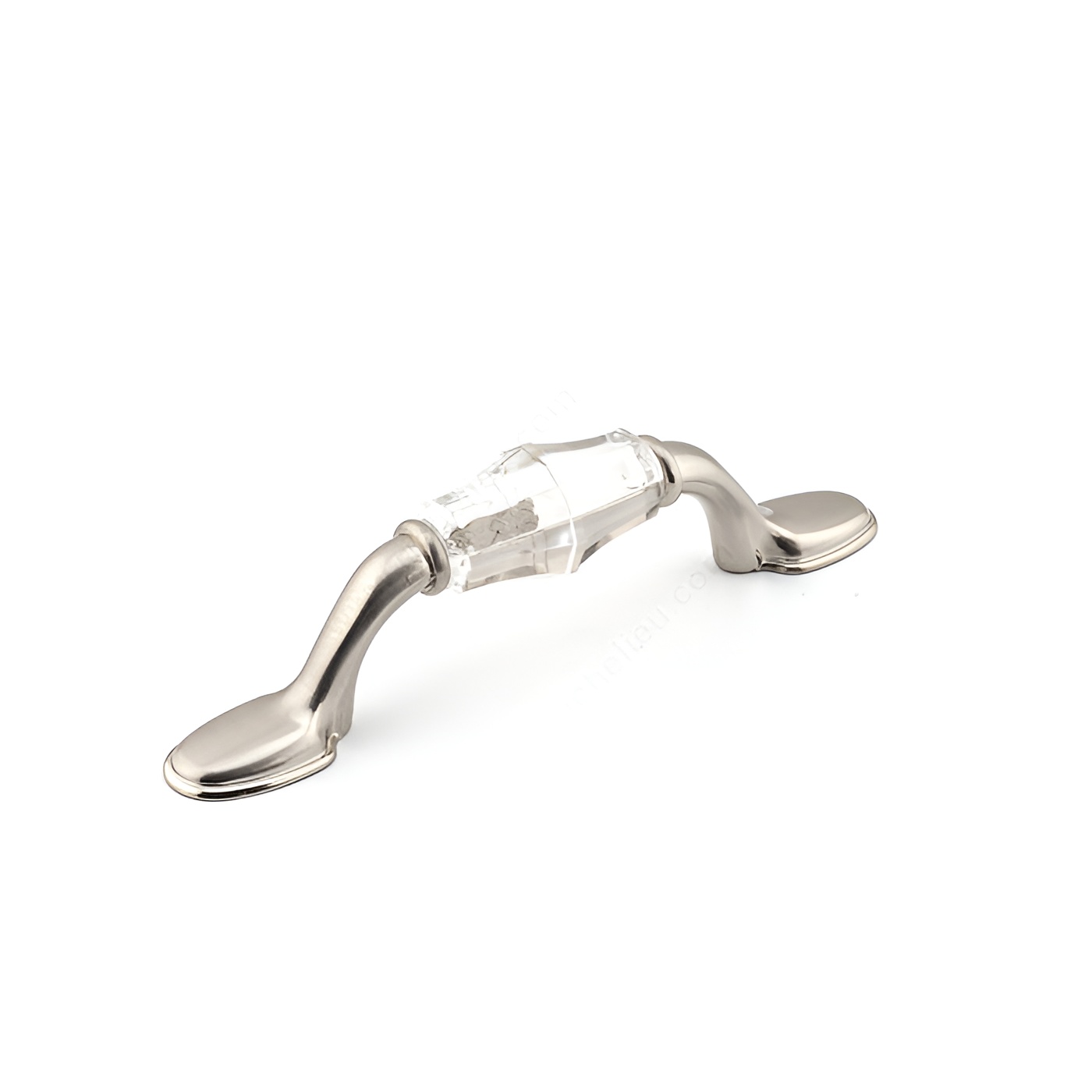 Richelieu BP11067619511 Eclectic Acrylic and Metal Pull - 1106 offers a bold and original design that effortlessly enhances the aesthetic of any kitchen space. This striking pull features a unique combination of a metal framework and a clear acrylic center, making it a perfect choice for those seeking to add an eclectic flair to their cabinetry. Measuring 4 29/32 inches in length and 3/4 inch in width, this pull has a center-to-center spacing of 3 inches, making it versatile for various cabinet styles. The brushed nickel finish, complemented by gray and chrome accents, ensures durability while adding a contemporary touch. With an overall projection of 1 1/4 inches, it provides a comfortable grip, facilitating ease of use. Constructed from high-quality metal, the Richelieu pull not only stands out visually but also promises long-lasting performance. Each pull comes with included 8/32 inch screws for straightforward installation. Whether used in a modern kitchen or a playful children's space, this pull is an excellent choice for homeowners and designers looking to make a statement. Elevate your cabinetry with the Richelieu BP11067619511 and enjoy the perfect blend of functionality and style.