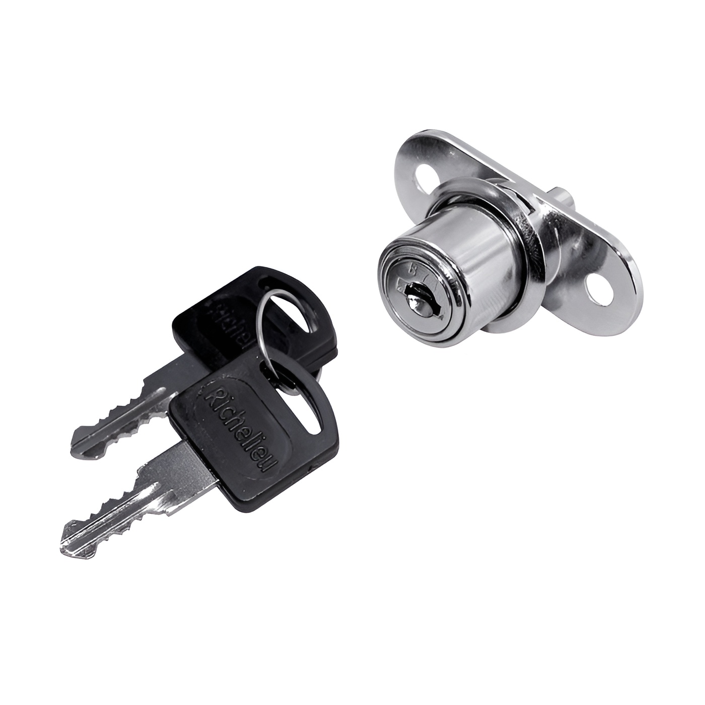 Richelieu BP140400140 Push Button Lock offers a seamless blend of security and convenience, making it an ideal solution for securing cabinet doors and drawers. Designed specifically for sliding wood doors, this lock is crafted from durable zinc alloy, ensuring long-lasting performance without compromising on style. With a sleek chrome finish, the BP140400140 adds a touch of modern elegance to any cabinetry. Its cylinder diameter measures 3/4 inch, with a length of 29/32 inch, making it suitable for panel thicknesses ranging from 19/32 to 25/32 inch. The lock features a wafer mechanism, providing reliable locking capability while allowing for a key turning degree of 45°. Each unit is keyed differently, offering enhanced security for your valuables. This push button lock is reversible, allowing for versatile installation options to suit your specific needs. Easy to ship via UPS, it's a practical addition to any project. Whether for residential or commercial use, the Richelieu BP140400140 Push Button Lock is a smart choice that combines functionality with aesthetic appeal, ensuring that your cabinets are both secure and stylish.