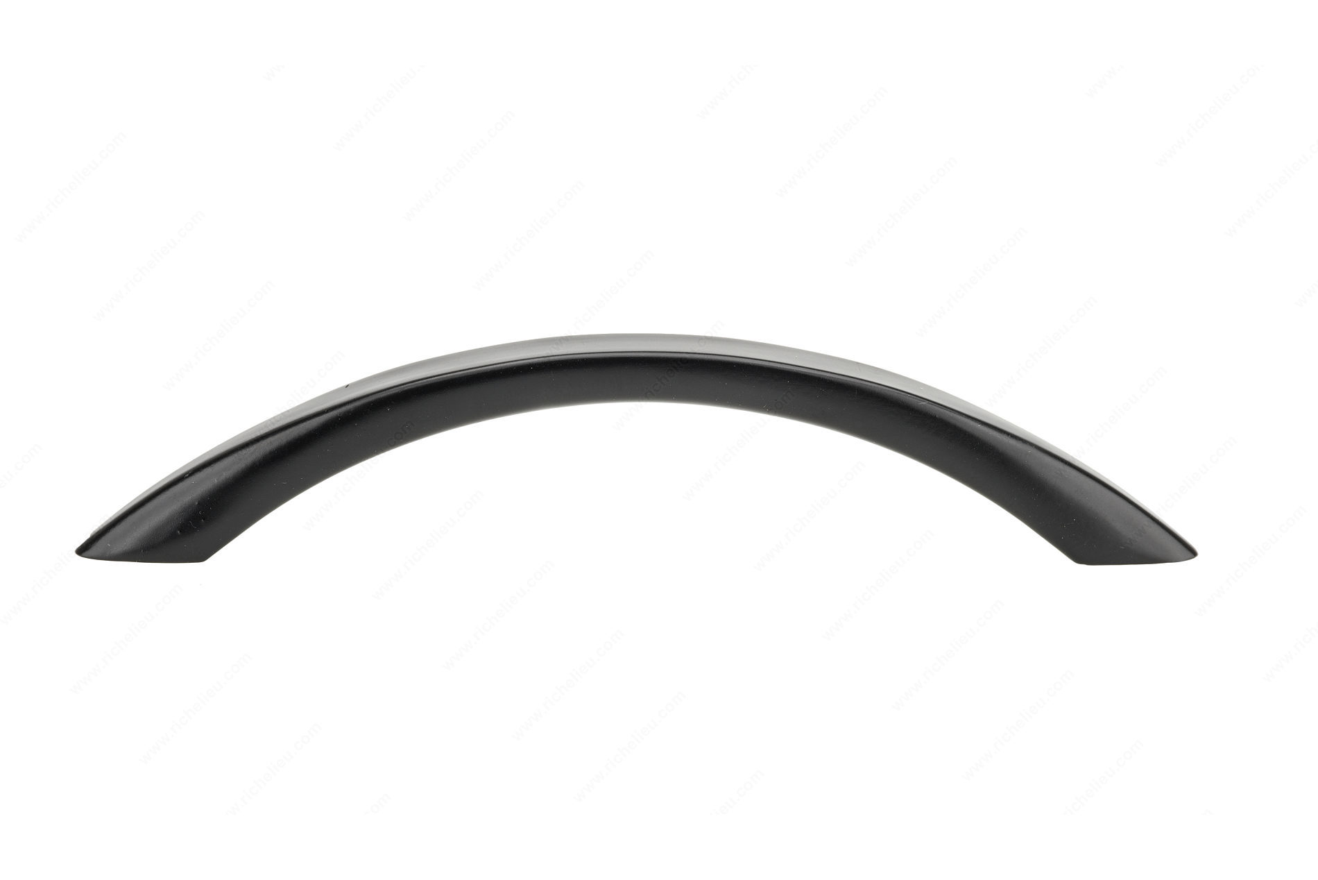 Richelieu BP16396900 Modern Metal Pull - 163 offers a sleek and contemporary design that enhances the aesthetic of any space. Crafted from high-quality metal, this modern bow pull features a flattened handle that gracefully transitions into oval ends, creating a seamless look that is both stylish and functional. With an overall length of 4 1/2 inches and a projection of 7/8 inch, this pull is perfectly sized for a variety of cabinetry applications. The matte black finish adds a sophisticated touch, making it an ideal choice for modern kitchens, bathrooms, or furniture pieces. The pull's center-to-center measurement of 3 25/32 inches ensures compatibility with standard cabinet layouts, while the included 8/32 inch screws simplify installation. Part of Richelieu's New Collection, the BP16396900 combines elegance and practicality, making it a smart choice for both building professionals and discerning homeowners. Its understated design allows it to complement various styles, from minimalist to industrial. Upgrade your cabinetry with the Richelieu BP16396900 Modern Metal Pull - 163 and enjoy a blend of contemporary flair and reliable functionality that will stand the test of time.