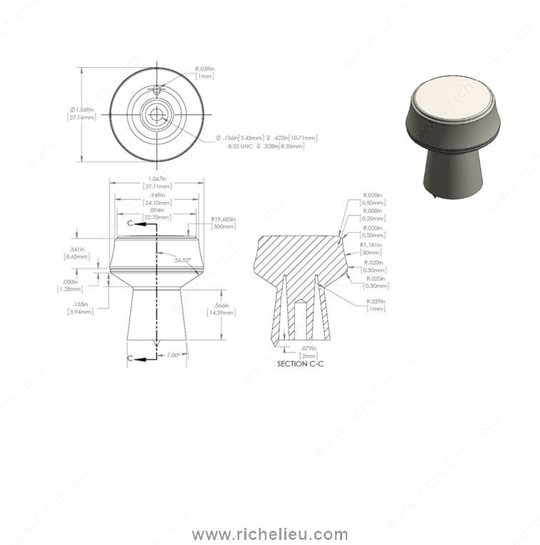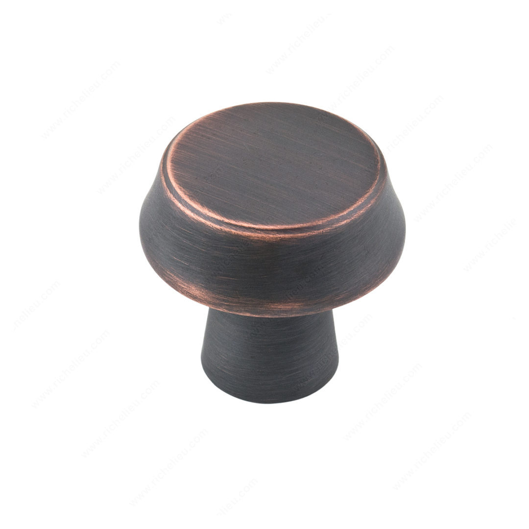 Richelieu BP1894027BORB Modern Metal Knob - 1894 is a striking addition to any contemporary space, showcasing a minimalist flared design that serves as a subtle yet impactful detail in modern décor. Crafted from high-quality zamak, this knob features a brushed oil-rubbed bronze finish that not only enhances its aesthetic appeal but also adds durability and longevity. With an overall diameter of 1 1/16 inches and a projection of 1 3/32 inches, this knob is perfectly sized for a variety of cabinet doors and drawers. Its stylish brown and bronze color combination allows it to seamlessly integrate into diverse color palettes, making it an ideal choice for kitchen, bathroom, or office cabinetry. The Richelieu BP1894027BORB is easy to install, coming with an 8/32 inch screw included for your convenience. Designed with a modern style in mind, it elevates the look of any space while remaining functional. Whether you're a building professional or a discerning homeowner, this knob promises to enhance your interiors with both elegance and practicality. Experience the difference that thoughtful design can make with this exquisite knob from Richelieu.