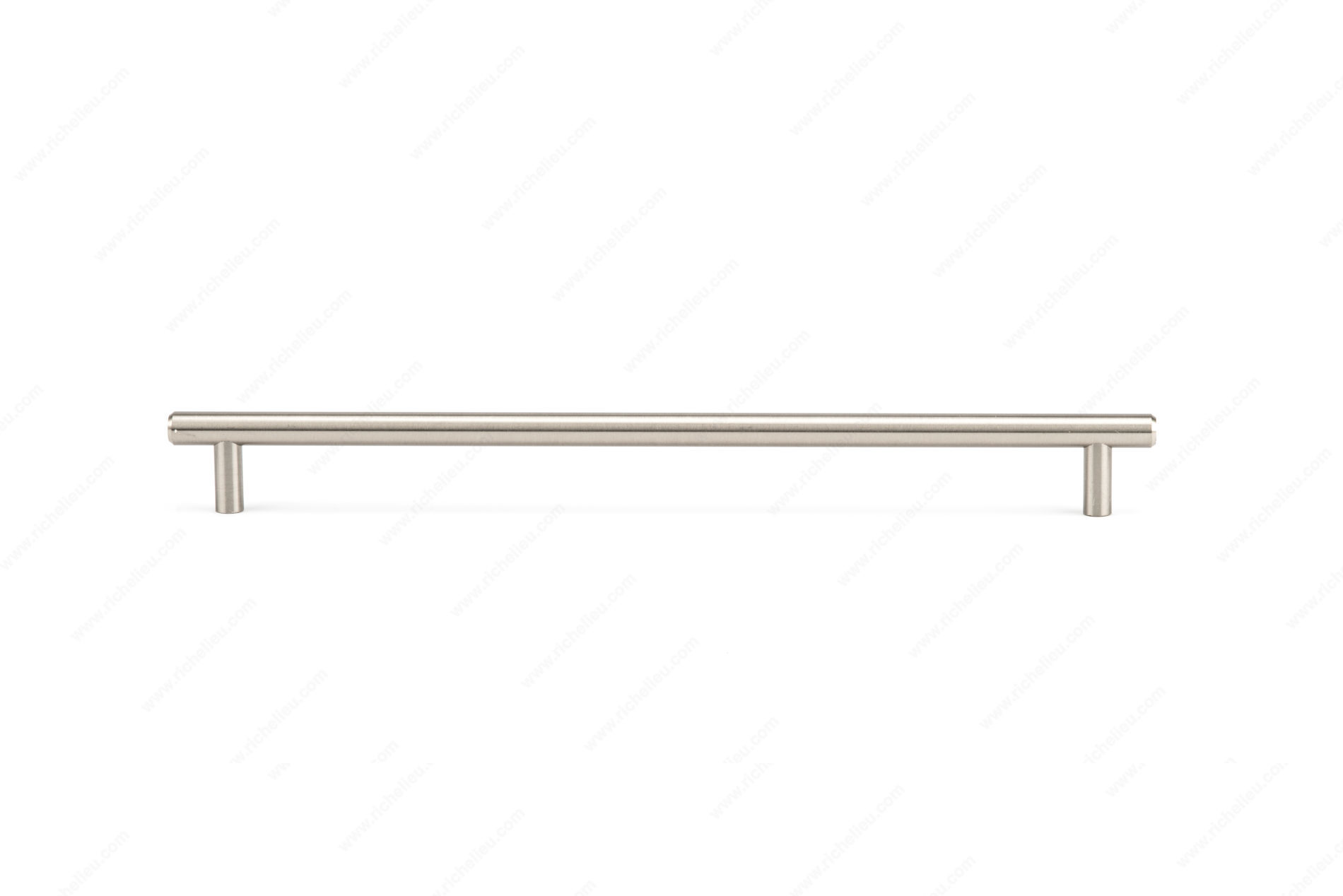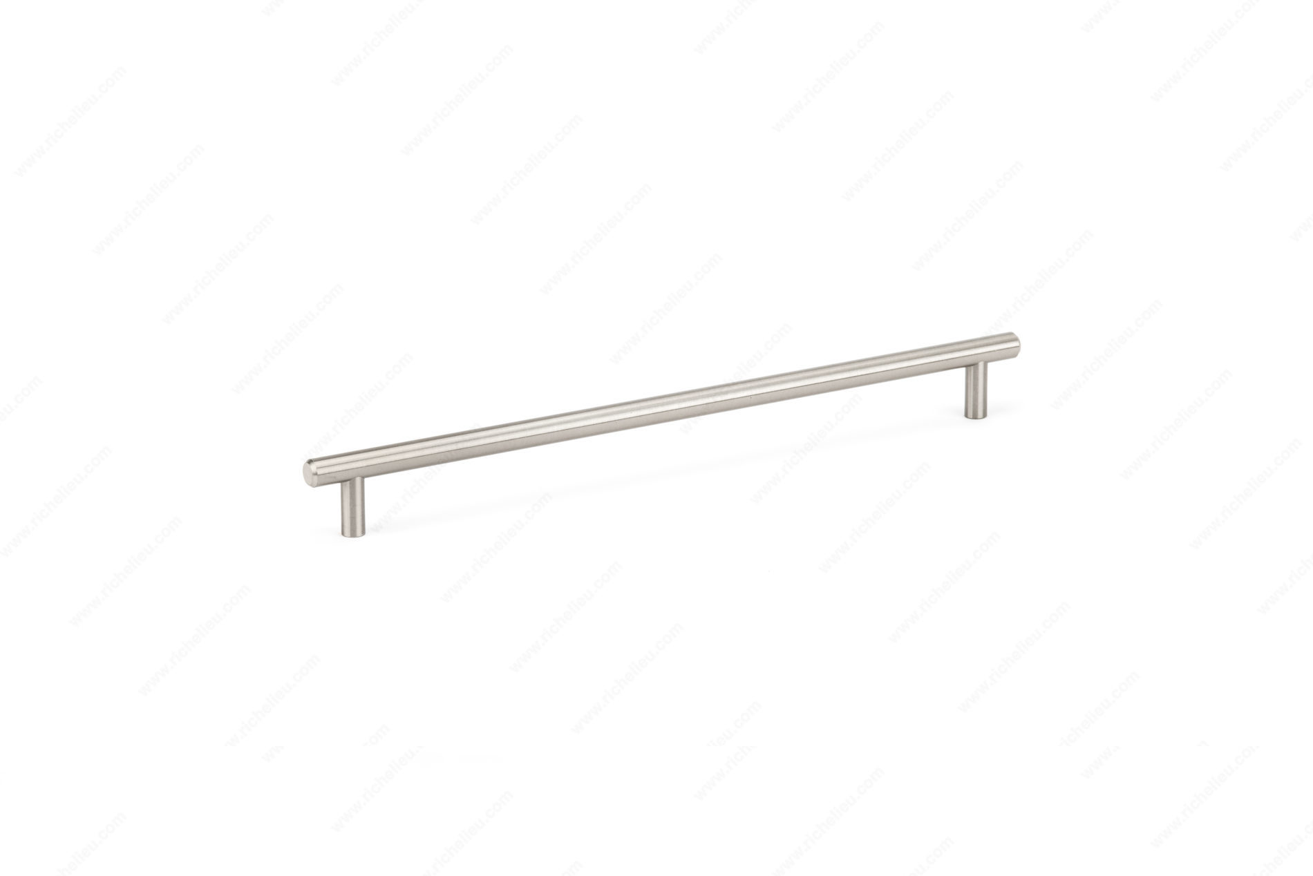 Richelieu BP205298195 Modern Steel Pull - 205 brings a touch of simple elegance to your decor with its streamlined design and solid steel construction. This pull is an excellent choice for those looking to elevate the aesthetic of existing furniture and cabinets effortlessly. Measuring 13 1/4 inches in length with a center-to-center distance of 11 3/4 inches, this pull fits seamlessly into various applications, ensuring a versatile upgrade for any space. The brushed nickel finish enhances its contemporary appeal, while the gray and chrome color scheme complements a wide range of styles. With a projection of 1 3/8 inches and a width of just 15/32 inches, this utility-style pull is both functional and stylish, making it suitable for kitchens, bathrooms, and beyond. It is designed to meet RoHS standards, ensuring safety and sustainability. The package includes 8/32 inch screws for easy installation, allowing you to enhance your cabinets quickly. Shipped via UPS, the Richelieu BP205298195 is part of the New Collection and is compatible with all collections under the 205 model. Upgrade your space with this modern steel pull that combines durability and sophistication effortlessly.