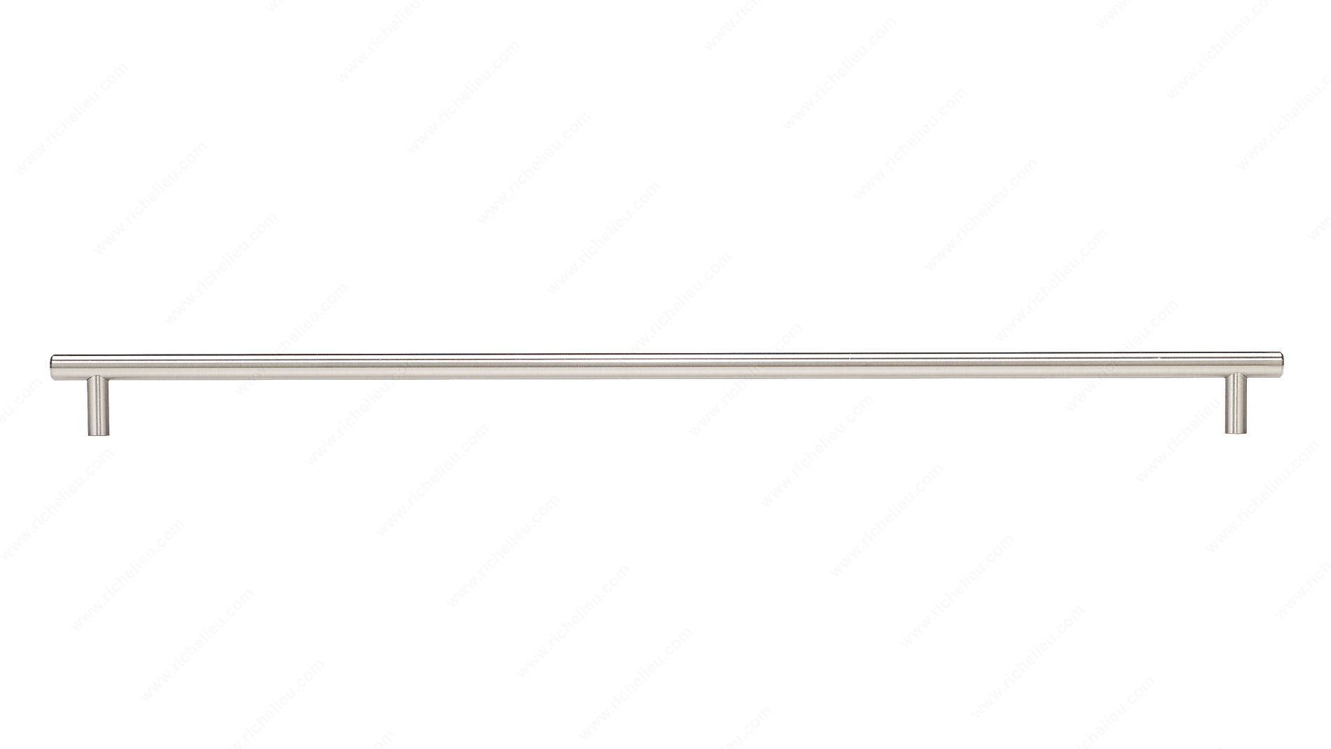 Richelieu BP205486195 Modern Steel Pull - 205 offers a sleek and sophisticated touch to any decor. Crafted from solid steel, this pull is designed to elevate the aesthetics of existing furniture and cabinetry effortlessly. Its brushed nickel finish not only adds a modern flair but also ensures durability and resistance to wear over time. Measuring 20 3/4 inches in overall length with a center-to-center spacing of 19 1/8 inches, this pull is perfectly sized for a variety of applications. The overall projection of 1 3/8 inches provides a comfortable grip, making it practical for daily use. With a width of 15/32 inches, it maintains a refined profile that complements both contemporary and classic settings. Richelieu's commitment to quality is reflected in this product’s RoHS certification, ensuring it meets stringent environmental standards. Included with the pull are 8/32 inch screws for easy installation, allowing you to upgrade your furniture without hassle. Available in a captivating gray and chrome color scheme, the BP205486195 is part of the New Collection, blending aesthetic appeal with functional design. Choose this utility-style pull to enhance your space with a touch of modern elegance.