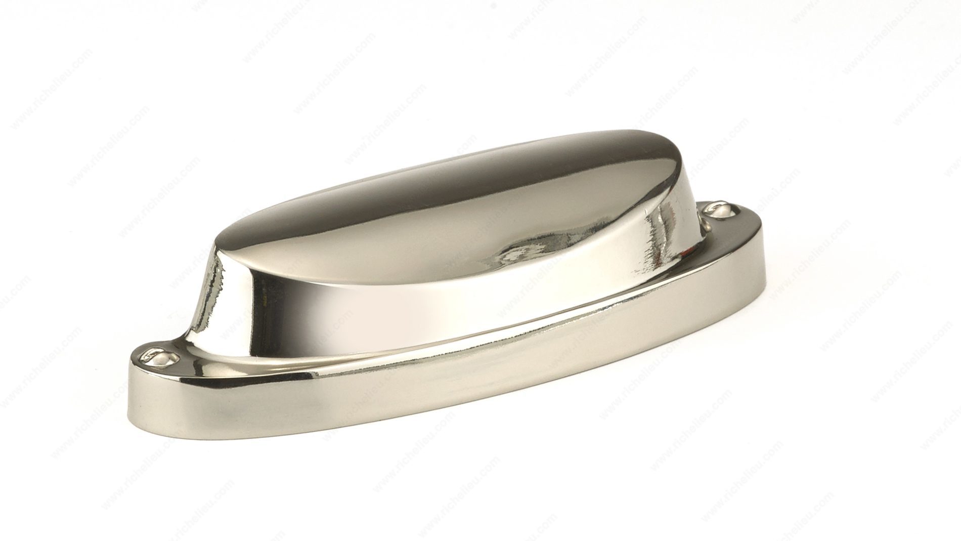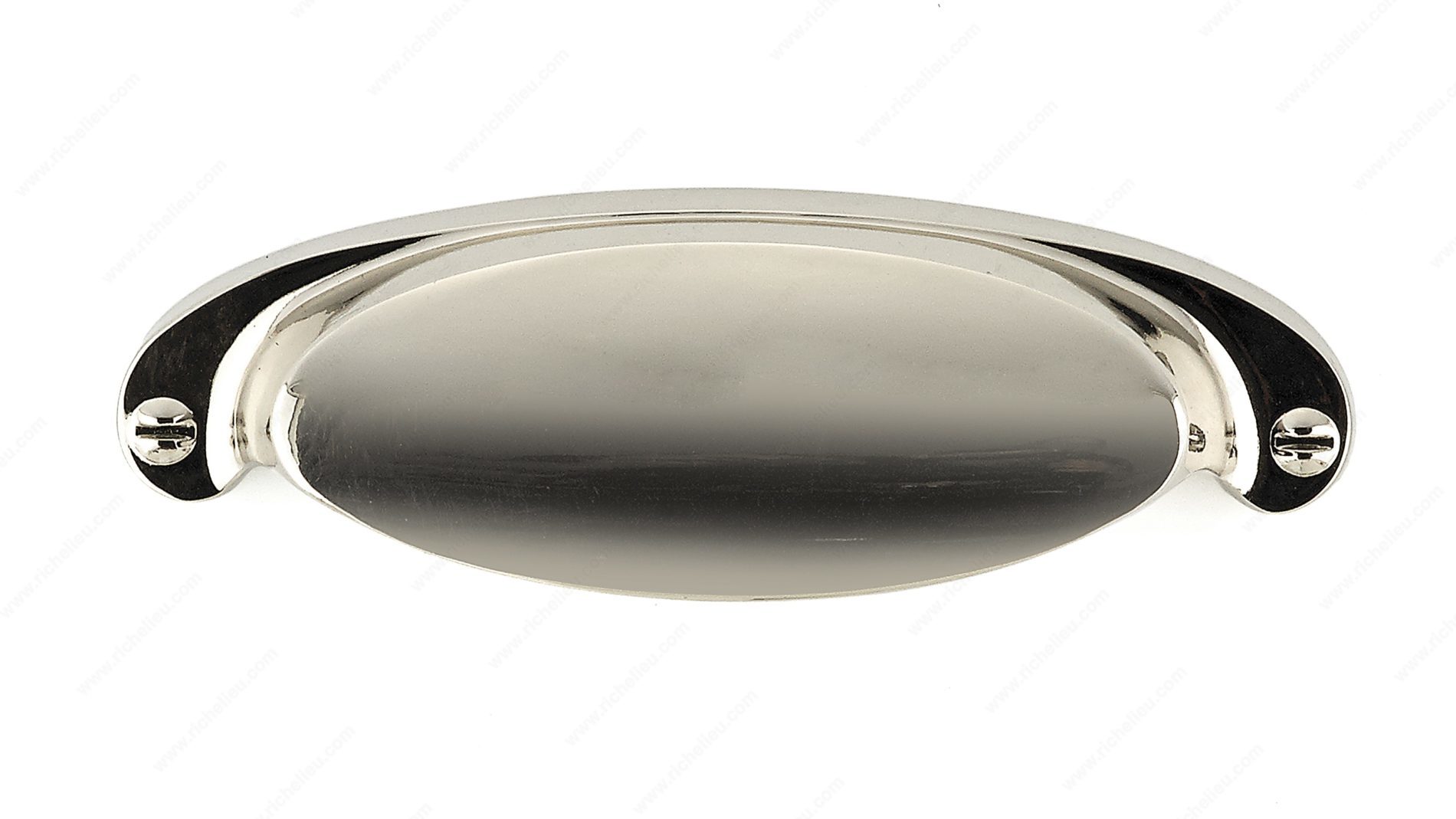 Richelieu BP21064180 Modern Metal Pull - 2106 is designed to elevate your home décor with its sleek and contemporary aesthetic. This cup pull features an eye-catching combination of gray and chrome that adds a stylish touch to cabinets and drawers. The polished nickel finish not only enhances its modern appeal but also offers durability and resistance to wear. With a center-to-center measurement of 2 17/32 inches, the pull is an ideal choice for various applications, ensuring a seamless fit in multiple settings. Measuring 3 15/16 inches in length, 1 1/4 inches in width, and projecting 7/8 inches, it strikes the perfect balance between form and function. Constructed from high-quality zamak, this pull is built to last. Each pull comes with included 8/32 inch screws for easy installation, making it a practical choice for both professionals and DIY enthusiasts. The extended ends, accentuated by a set of false screws, contribute to its modern design and provide a visually appealing detail that stands out. Whether you are refurbishing your kitchen or enhancing your furniture, the Richelieu BP21064180 Modern Metal Pull is the perfect finishing touch that combines style and functionality.