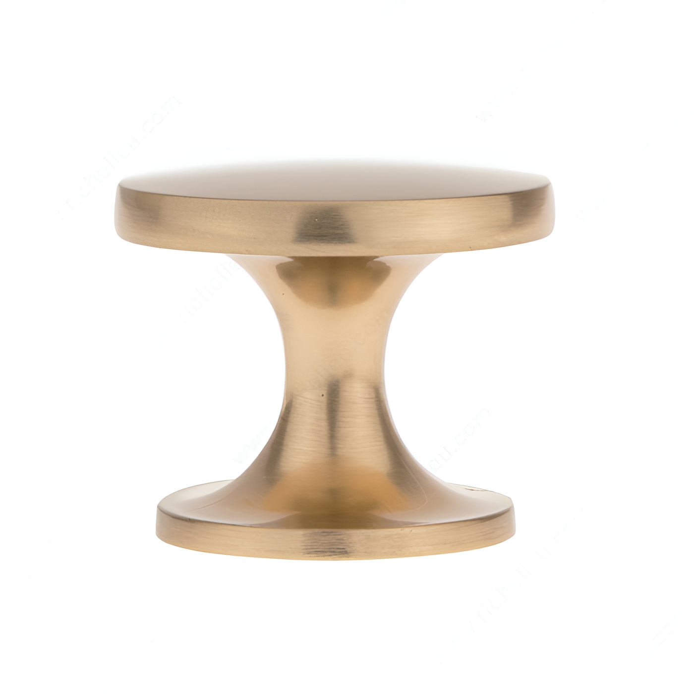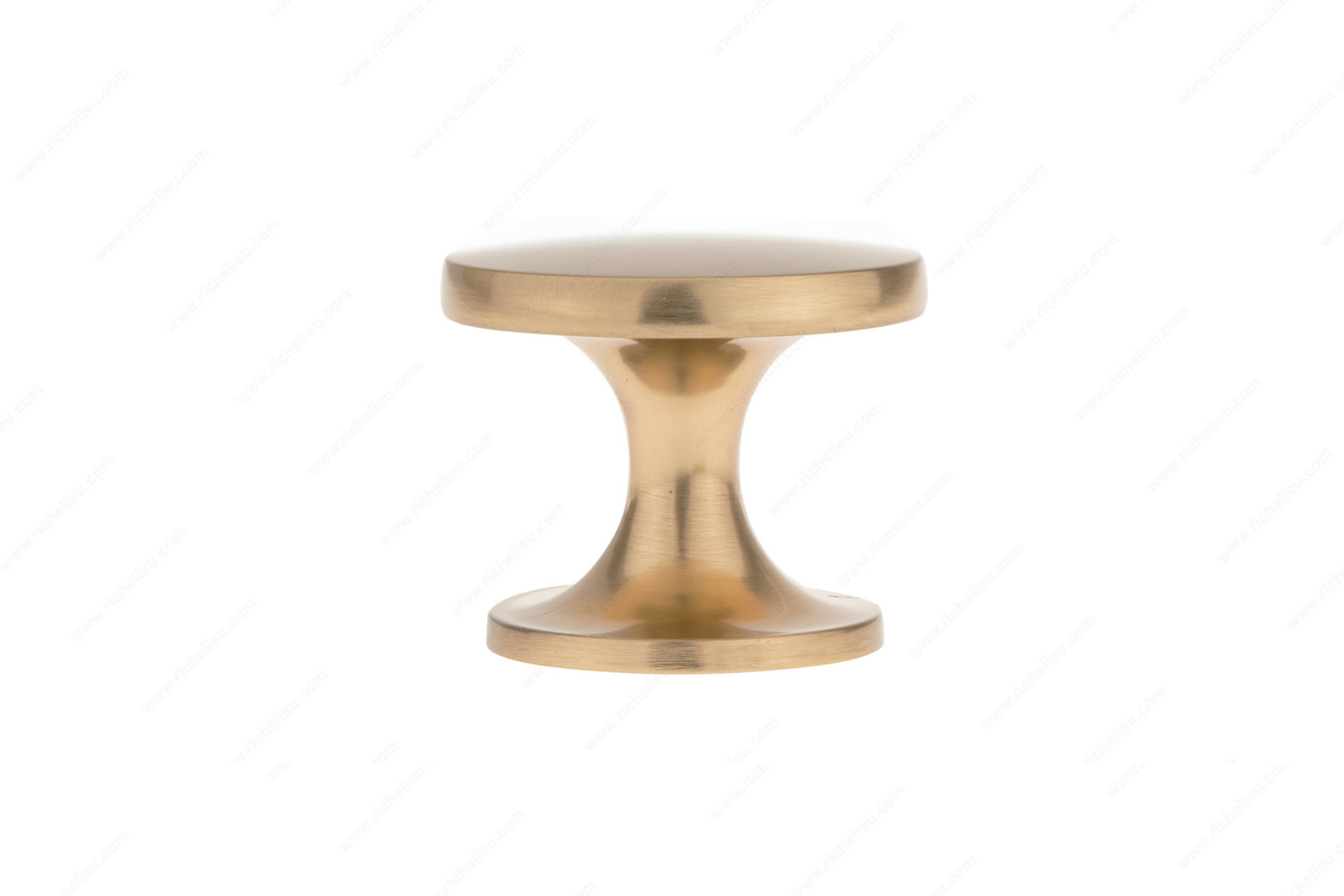 Richelieu BP226544CHBRZ Modern Metal Wardrobe Knob - 2265 features a contemporary design that complements a variety of interior styles. Its clean lines and sleek silhouette are enhanced by a flattened, tapered base, creating a visually appealing focal point for your wardrobe or cabinet. The knob measures 1 23/32 inches in diameter, with a base diameter of 1 13/32 inches, and a projection of 1 15/32 inches, making it both functional and stylish. Crafted from durable zamak, this wardrobe knob is finished in an elegant Champagne Bronze (CHBRZ), adding a touch of sophistication to any space. The yellow and brass color scheme lends warmth and character, making it an ideal choice for modern interiors. Each knob includes an 8/32 inch screw for easy installation, ensuring a hassle-free upgrade to your furniture. Part of Richelieu's New Collection, this knob not only enhances the aesthetic of your cabinets but also provides a reliable and comfortable grip. Perfect for both building professionals and discerning homeowners, the Richelieu BP226544CHBRZ is an excellent addition to any design project. Whether you're renovating a space or building from scratch, this wardrobe knob is sure to impress.