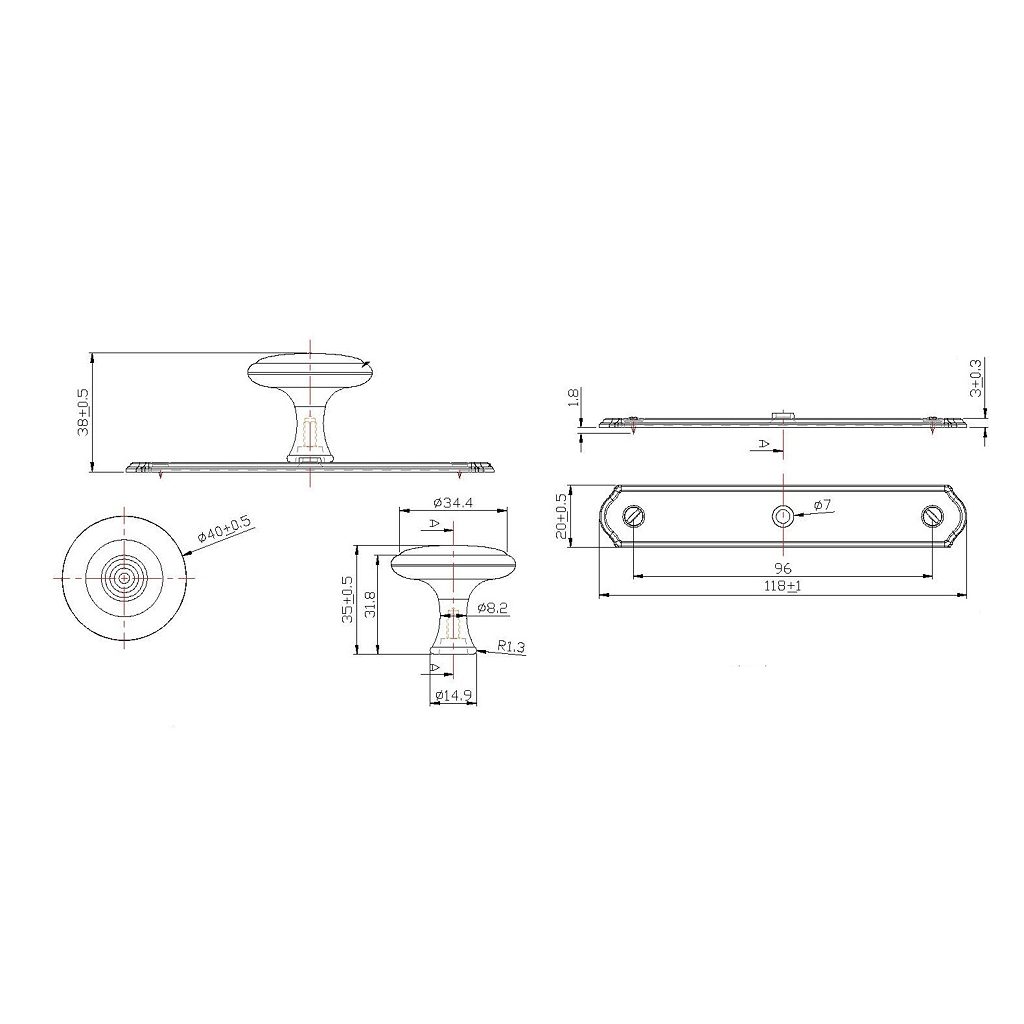 Projection - Overall Dimensions: 38 mm
