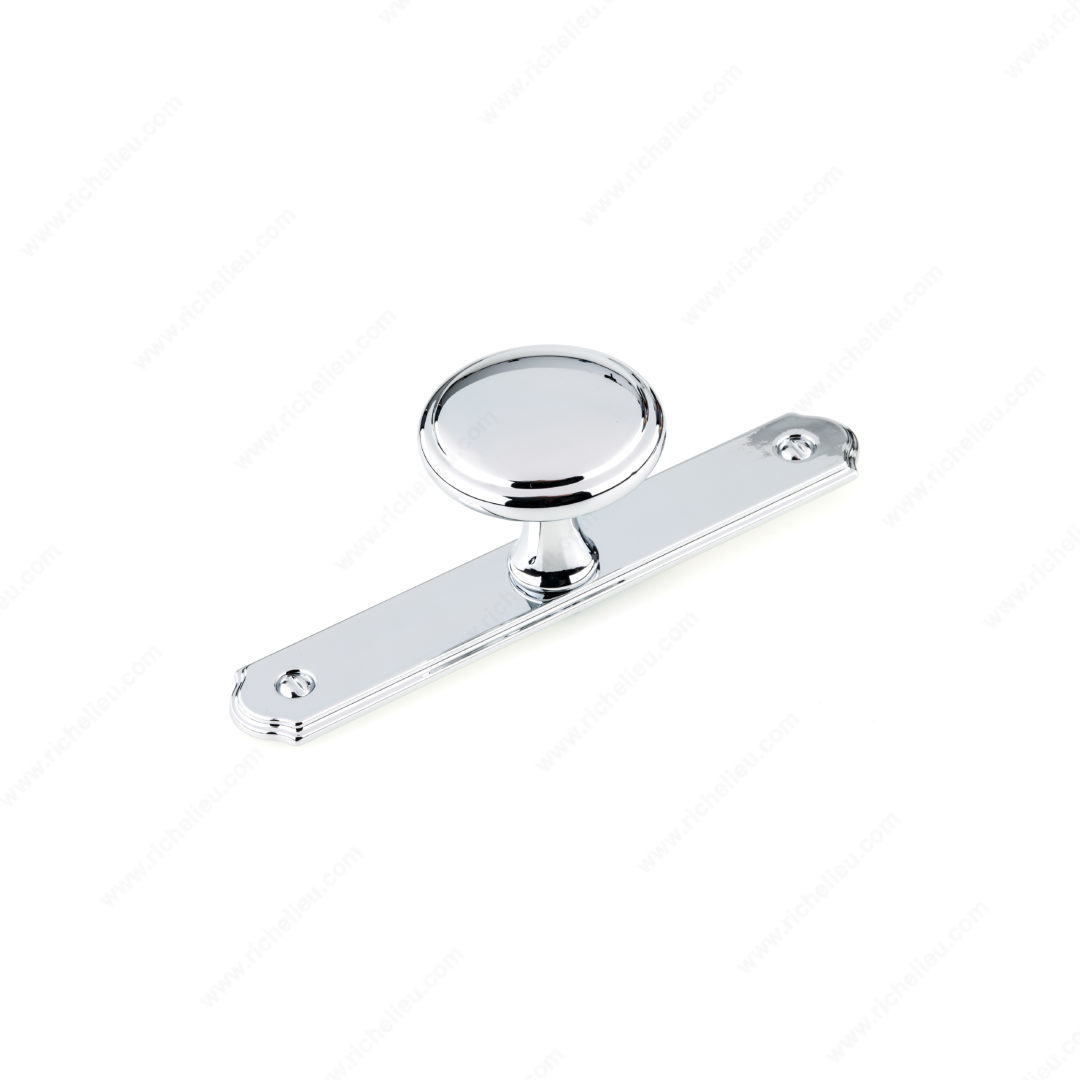 Richelieu BP228640140 Transitional Metal Wardrobe Knob and Backplate offers a sophisticated solution for enhancing any wardrobe. This elegant accessory features a round knob paired with a removable rectangular backplate, creating a striking contrast that embodies a balanced transitional style. The combination of classic details with modern aesthetics makes it an ideal choice for a variety of spaces, ensuring your wardrobes stand out. Crafted from durable zamak, this knob and backplate set showcases a sleek chrome finish that adds a polished touch to your furniture. With an overall diameter of 1 9/16 inches and a base diameter of 19/32 inches, it is designed to fit comfortably in the hand, providing ease of use. The overall length measures 4 21/32 inches, while the projection is 1 1/2 inches, making it both functional and stylish. This wardrobe knob features an 8/32 inch screw, included for your convenience, ensuring straightforward installation. The subtle gray and chrome color palette allows for seamless integration into various design themes, from contemporary to traditional. Elevate your wardrobe with the Richelieu BP228640140, where functionality meets refined design.