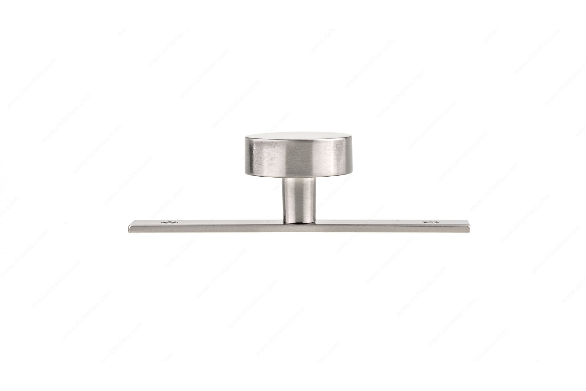 Richelieu BP229540195 Modern Metal Wardrobe Knob and Backplate brings a contemporary flair to your furniture and cabinetry. This sleek round wardrobe knob, paired with a streamlined removable backplate, showcases a harmonious blend of crisp geometric shapes that elevate any design aesthetic. The faux screw embellishments add a subtle contrast, enhancing the backplate's distinctive rectangular silhouette and creating a polished look. Crafted from durable zamak, this knob features a brushed nickel finish that exudes sophistication while ensuring long-lasting wear. With an overall diameter of 1 9/16 inches and a base diameter of 15/32 inches, it provides a comfortable grip and is ideal for modern interiors. The backplate measures 4 29/32 inches in length and 1 3/8 inches in projection, offering an elegant presence on wardrobes and cabinets alike. The Richelieu wardrobe knob is part of the New Collection and is available in a stylish gray and chrome color scheme, making it versatile for various design themes. Each knob comes with an 8/32 inch screw included for easy installation. Transform your space with this modern hardware solution that perfectly balances form and function.