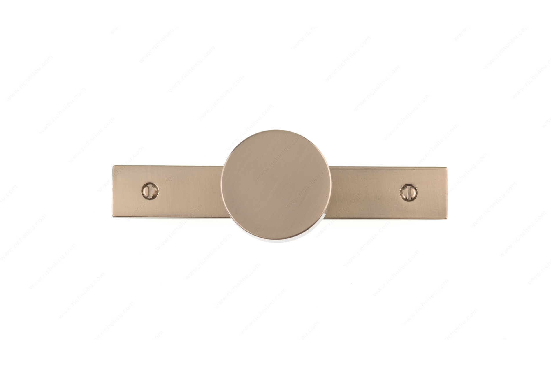 Richelieu BP229540CHBRZ Modern Metal Wardrobe Knob and Backplate combines contemporary design with practical functionality, perfect for elevating your furniture and cabinetry. This sleek, round wardrobe knob features a base diameter of 15/32 inches and an overall diameter of 1 9/16 inches, ensuring a comfortable grip while enhancing aesthetic appeal. The knob is accompanied by a streamlined removable backplate, measuring 4 29/32 inches in length and 1 3/8 inches in projection, which adds a modern touch with its crisp geometric shapes. Crafted from durable zamak and finished in an elegant champagne bronze (CHBRZ), this wardrobe knob and backplate set is designed to harmonize with various interior styles. The faux screw embellishments provide subtle contrast to the backplate's rectangular silhouette, making it a stylish focal point in any room. With an 8/32 inch screw included, installation is straightforward, allowing for a seamless upgrade to your space. Part of Richelieu's New Collection, this wardrobe knob and backplate not only delivers on design but also offers functionality that professionals and discerning homeowners will appreciate. Enhance your cabinetry with this modern accessory that beautifully balances form and function.