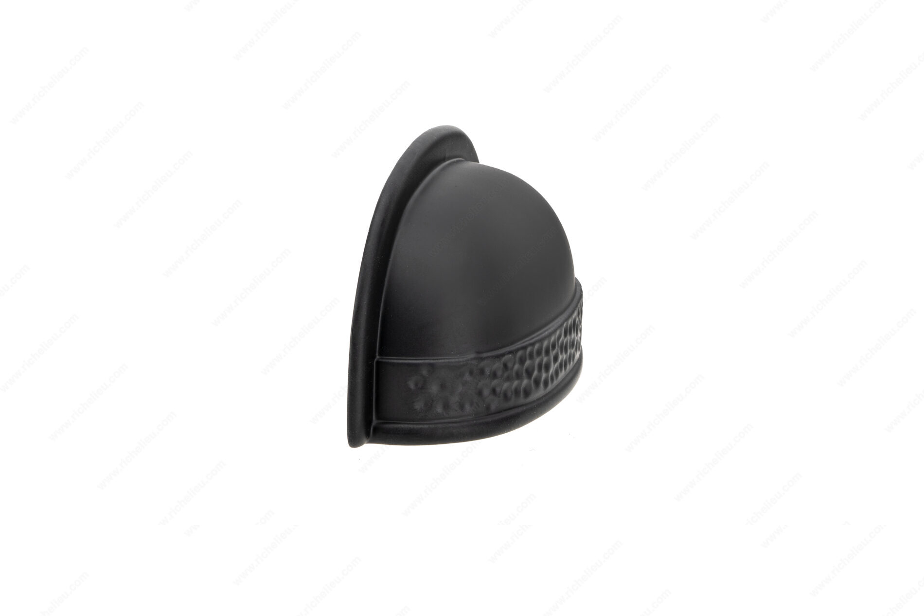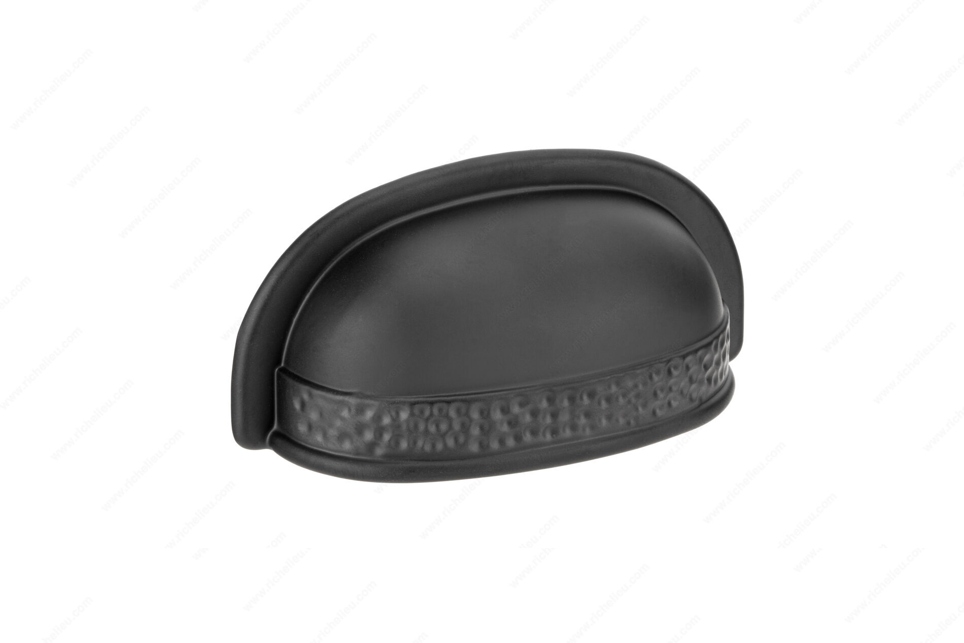 Richelieu BP2321764900 Traditional Metal Cup Pull - 2321 brings a touch of rustic charm to any cabinetry or furniture piece. Crafted from durable metal, this cup pull features a striking hammered texture that enhances its traditional aesthetic, instantly revitalizing your décor. The matte black finish adds a sleek sophistication, making it an ideal choice for both contemporary and classic design schemes. With a center-to-center measurement of 2 17/32 inches, this pull is designed for easy installation and fits seamlessly into a variety of settings. The overall dimensions stand at 1 21/32 inches in height and 3 15/32 inches in length, with a projection of 1 3/32 inches, ensuring a comfortable grip. Each pull comes with M4 screws for hassle-free mounting, allowing you to elevate your space without the need for additional hardware. The Richelieu BP2321764900 is not only functional but also an attractive enhancement for kitchen cabinets, dresser drawers, or any space that could benefit from a stylish upgrade. Its traditional style and robust construction promise long-lasting beauty and performance, making it a smart choice for building professionals and discerning homeowners alike.