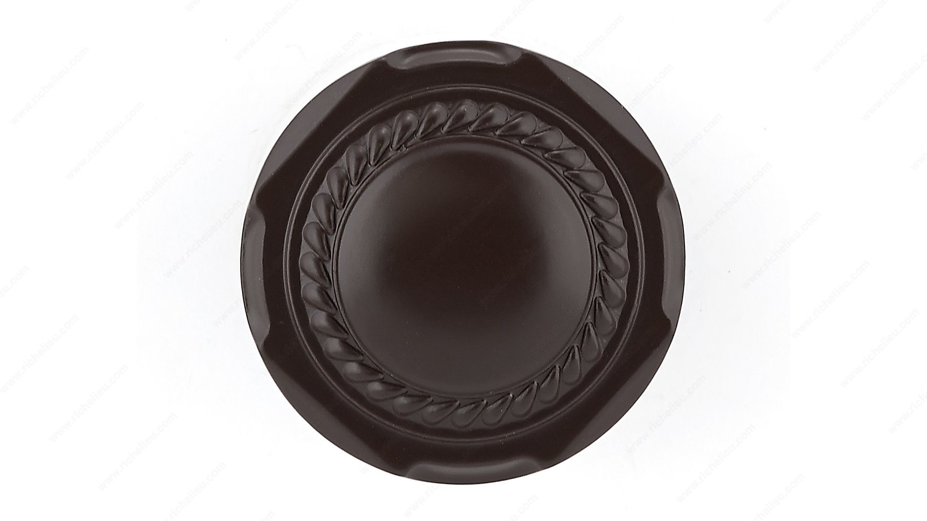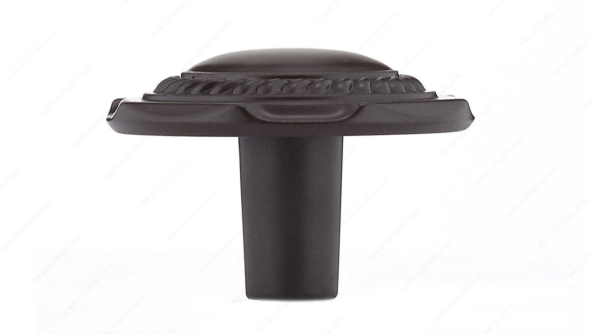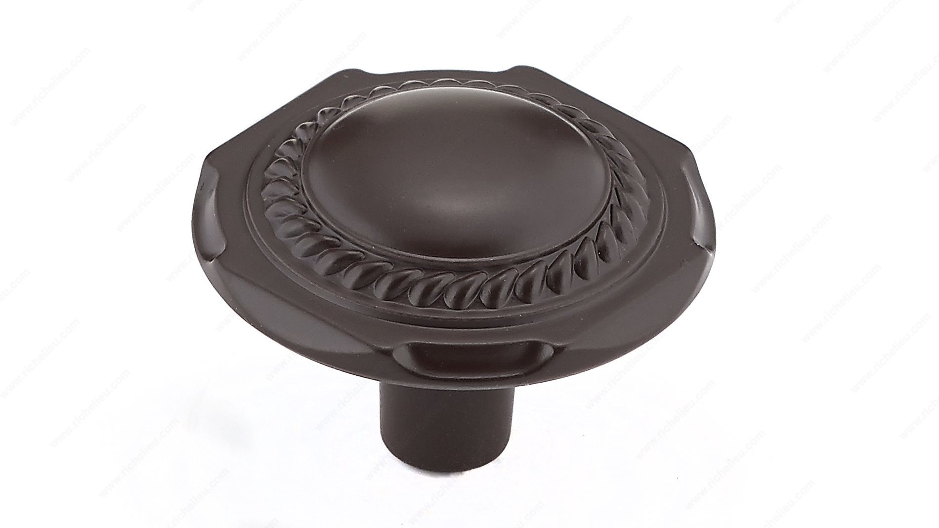 Richelieu BP2390332801 Traditional Metal Knob - 2390 is a stunning addition that infuses a classic touch into your kitchen or bathroom cabinetry. This round metal knob features exquisite twisted-rope detailing, providing a vintage accent that enhances the overall aesthetic of your space. Crafted from durable metal with a beautiful rust finish, this knob not only looks elegant but also withstands daily use. Measuring 1 1/4 inches in diameter and projecting 13/16 inches, this knob is designed for comfortable handling while ensuring a stylish focal point. The rich color options of red, rose, and rust allow for versatile integration into various design schemes, making it an ideal choice for traditional and country-style interiors. Each knob comes with an 8/32 inch screw for easy installation, ensuring a secure fit that you can rely on. Suitable for both kitchen and bathroom cabinets, the Richelieu BP2390332801 offers a timeless design that appeals to building professionals and discerning homeowners alike. With its combination of classic style and practical functionality, this knob is a perfect choice for those looking to elevate their cabinetry with a touch of sophistication.