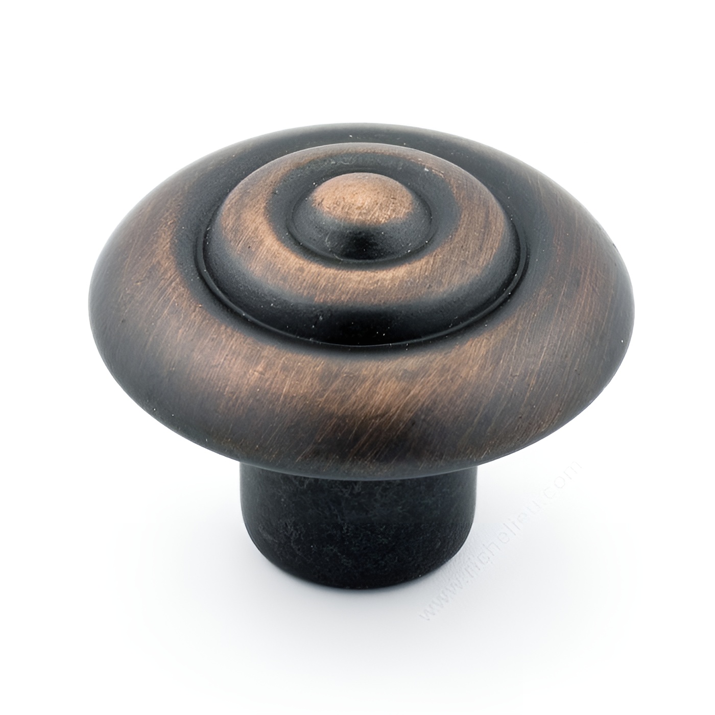 Richelieu BP2391132BORB Traditional Metal Knob - 2391 enhances the elegance of any classic kitchen or bathroom with its exquisite design and rich finish. Crafted from durable metal, this knob features a brushed oil-rubbed bronze finish that beautifully combines deep brown and bronze tones, making it a perfect fit for a traditional decor style. Measuring 1 1/4 inches in diameter and projecting 15/16 inches from the surface, this knob is both functional and stylish, providing a firm grip for effortless opening and closing of cabinets and drawers. The unique design showcases three molded concentric rings, adding a touch of sophistication to your space. The BP2391132BORB model is shipped via UPS and comes with an M4 screw for easy installation, ensuring you can quickly enhance your cabinetry without hassle. Its utility-style design complements a wide range of furnishing styles, making it an excellent choice for homeowners and professionals alike. Whether you are renovating a kitchen or updating a bathroom, this traditional metal knob is an ideal choice that combines functionality with timeless aesthetics. Upgrade your spaces with Richelieu’s quality craftsmanship and attention to detail.