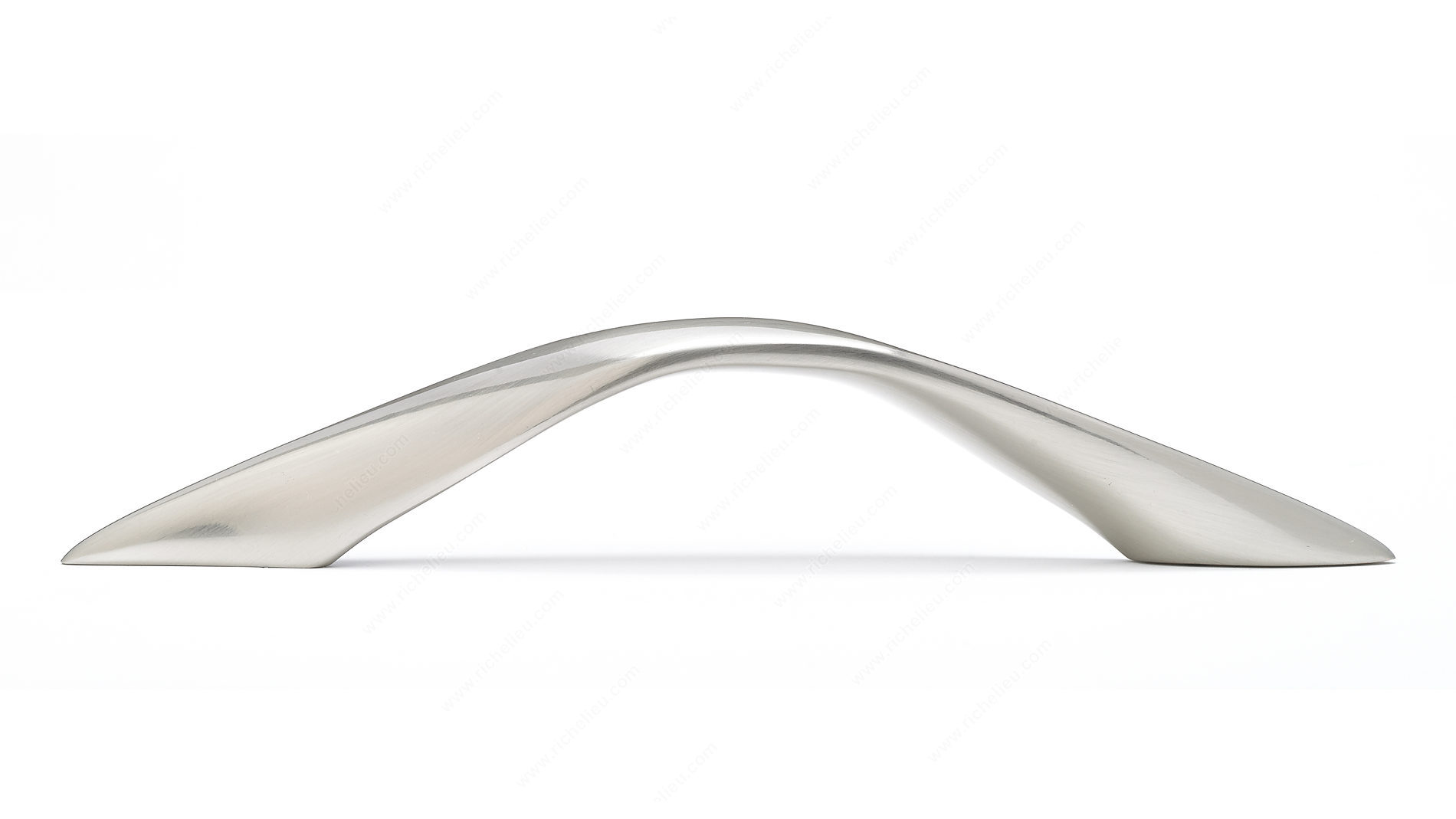 Richelieu BP2559128195 Modern Metal Pull - 2559 brings a striking contemporary flair to your home design with its unique twisted shape and bold aesthetic. Crafted from durable zamak, this pull is not only stylish but also built to withstand daily use. The brushed nickel finish adds a sophisticated touch, beautifully complementing the gray and chrome color scheme, making it an ideal choice for modern interiors. With an overall length of 7 5/16 inches and a width of 13/16 inches, this pull features a comfortable projection of 1 11/32 inches, ensuring easy handling. The center-to-center measurement of 5 1/32 inches allows for seamless integration into standard cabinetry and furniture. Each pull comes packaged in a convenient bag, along with 8/32 inch screws for straightforward installation. Whether you're updating kitchen cabinets, bathroom vanities, or furniture pieces, the modern style of the BP2559128195 offers versatility and a touch of elegance. Elevate your interiors with this eye-catching hardware that perfectly balances form and function. Choose Richelieu for quality and design that speaks to your aesthetic sensibilities.