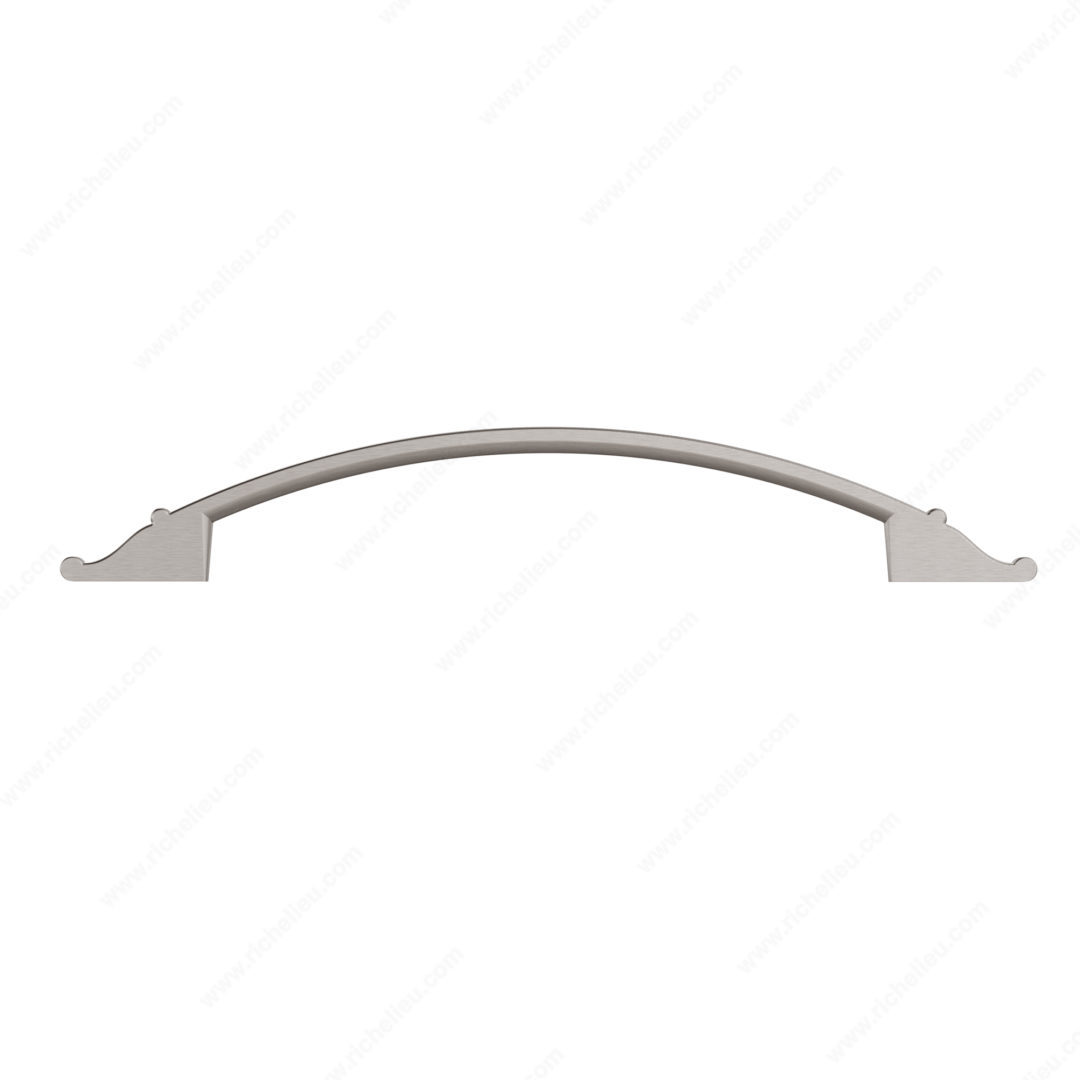 Richelieu BP2606160195 Traditional Metal Pull - 2606 is the perfect blend of elegance and functionality, making it an exceptional choice for enhancing your kitchen or bathroom cabinets. This stylish pull measures 7 7/16 inches in length, with a center-to-center distance of 6 5/16 inches, ensuring a comfortable grip for everyday use. Crafted from durable zamak, it features a brushed nickel finish that adds a sophisticated touch to any cabinetry, while the gray and chrome accents provide a contemporary flair. The pull's traditional design is complemented by detailed ends, making it an attractive addition to both classic and modern decor. With a projection of 1 3/16 inches and a width of 9/16 inches, it is user-friendly, allowing for easy installation and operation. Each pull comes with 8/32 inch screws included, ensuring a hassle-free setup. Designed as part of Richelieu’s New Collection, this pull exemplifies quality craftsmanship and timeless style. Whether you are updating existing cabinetry or embarking on a new project, the Richelieu BP2606160195 Traditional Metal Pull will embellish your space with charm and sophistication, making it an indispensable component of your design vision.