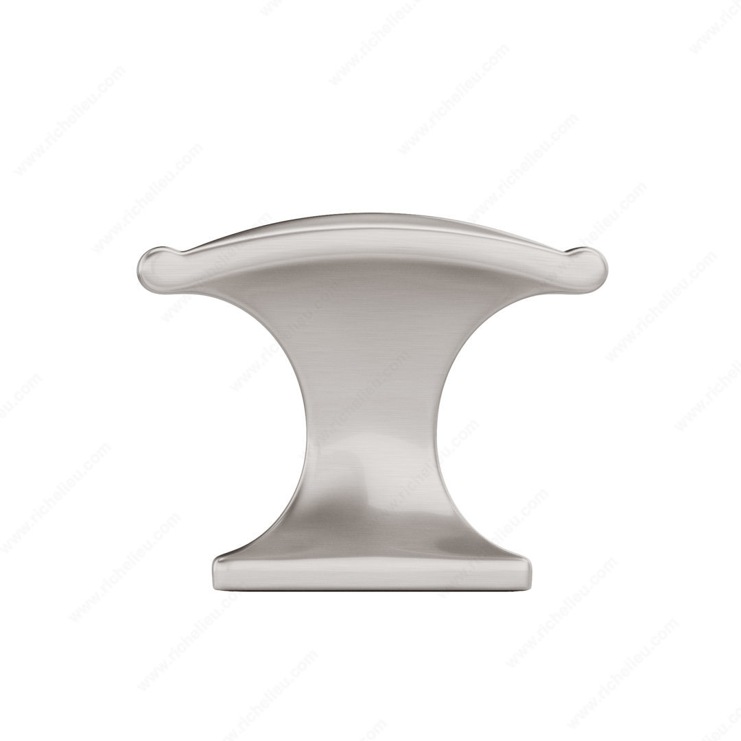 Richelieu BP260637195 Traditional Metal Knob - 2606 presents a refined and elegant solution for enhancing cabinetry and furniture. This traditional rectangular knob features a sleek design with clean lines and refined edges, making it an ideal complement to a variety of décors. Crafted from durable Zamak, it ensures longevity while maintaining a modern aesthetic. The brushed nickel finish in a sophisticated gray and chrome color adds a touch of sophistication to any space. With overall dimensions of 1 3/8 inches in length, 25/32 inches in width, and a projection of 1 3/16 inches, this knob fits comfortably in hand, providing both style and functionality. The traditional style is perfect for those looking to add a classic touch to their interiors. Included with the knob is an 8/32 inch screw, ensuring easy installation and secure attachment. Whether you are updating kitchen cabinets, bathroom vanities, or furniture pieces, the Richelieu BP260637195 knob is a versatile choice that seamlessly integrates with your design vision. Elevate your home’s aesthetic with this beautifully crafted knob that embodies both tradition and quality.