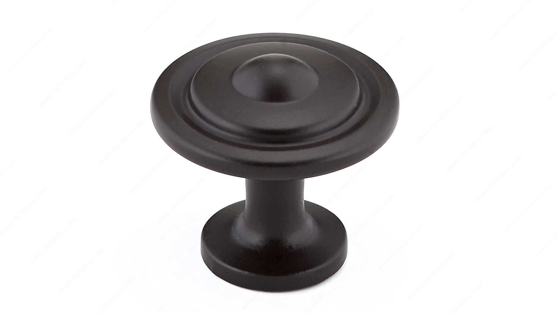Richelieu BP2920ORB Traditional Metal Knob - 2920 is an exquisite choice for enhancing furniture and cabinetry with a classic touch. Crafted from durable zamak, this knob features an elegant oil-rubbed bronze finish that beautifully complements traditional décor styles. The unique circular details on the head not only add visual interest but also provide a comfortable grip, making it both functional and stylish. With an overall diameter of 1 1/4 inches and a projection of 1 1/8 inches, this knob is perfectly sized for easy use while maintaining a refined appearance. The traditional style makes it suitable for a variety of applications, whether you're updating kitchen cabinets, dressers, or antique furniture pieces. Each knob comes packaged in a convenient bag and includes the necessary 8/32 inch screw for straightforward installation. Available in a warm brown and bronze color palette, the Richelieu BP2920ORB easily integrates into any design scheme. Its classic aesthetic ensures that it will remain a timeless addition to your home. With the reliability of Richelieu, you can trust that this knob will enhance both the beauty and functionality of your spaces for years to come.