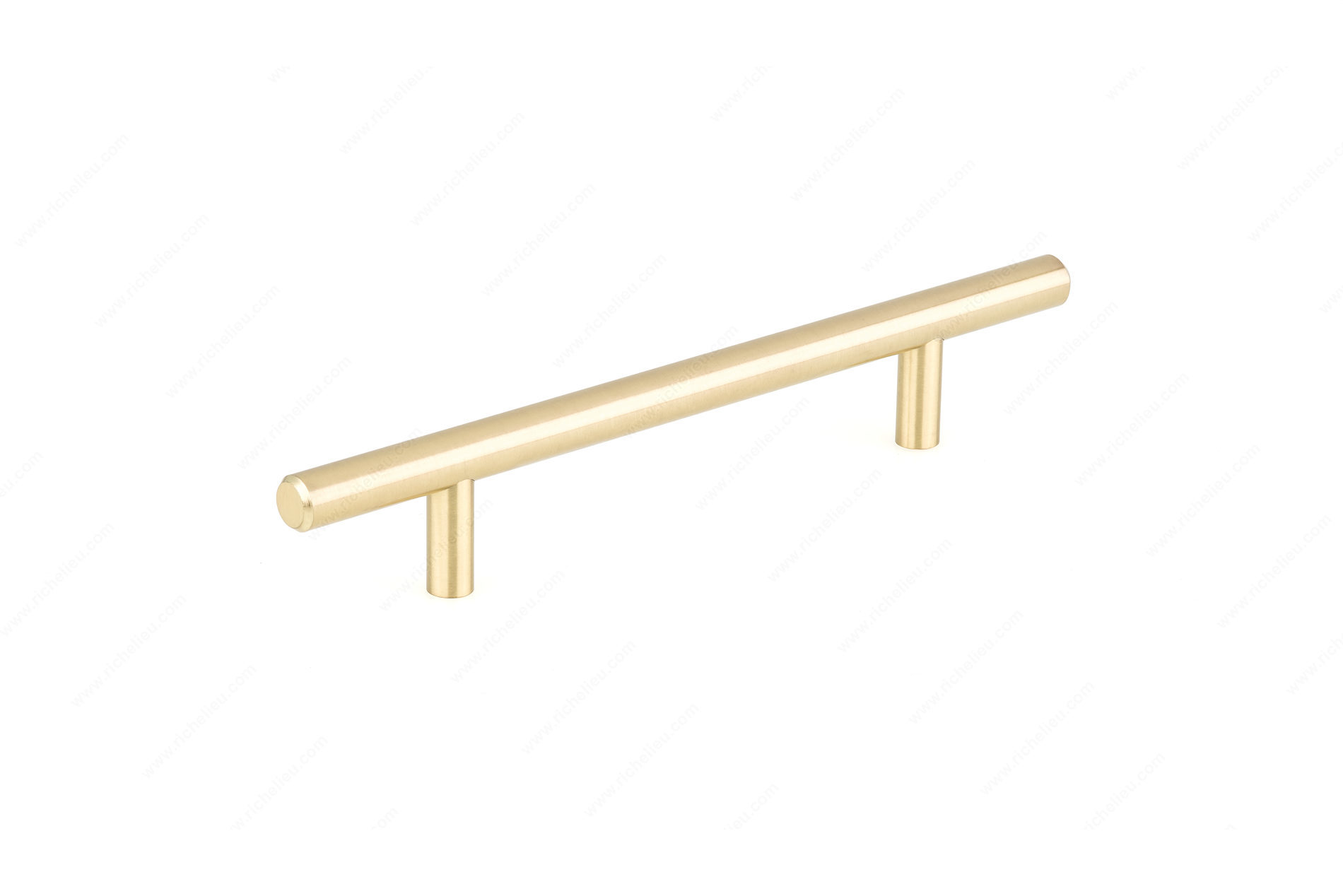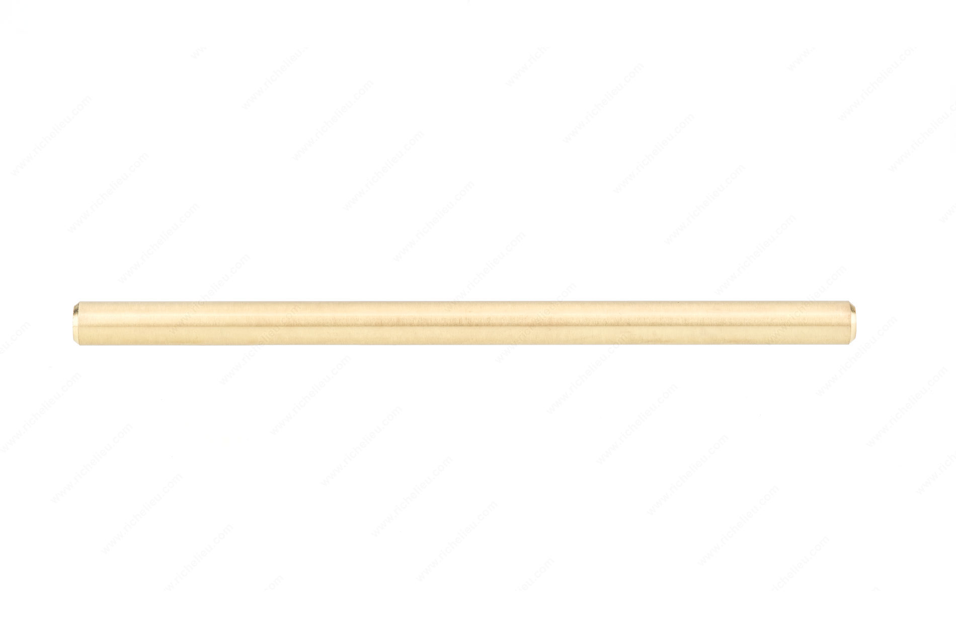 Richelieu BP305128160 Modern Steel Pull - 305 presents a clean and sturdy design, making it a timeless addition to any cabinetry or furniture project. Crafted from solid steel, this durable handle features rounded corners, ensuring user-friendliness across various applications. The satin brass finish offers an elegant touch, while the yellow and brass color combination adds a contemporary flair to your interior design. With a center-to-center measurement of 5 1/32 inches, the pull is perfectly sized for kitchen cabinets, drawers, or furniture pieces. Its overall dimensions include a length of 8 3/16 inches, a width of 13/32 inches, and a projection of 1 3/8 inches, making it both functional and aesthetically pleasing. Standard 8/32 inch screws are included for easy installation, while the product adheres to RoHS standards and certifications, ensuring environmental compliance. Part of the new Urban collection, the BP305128160 pull not only enhances the look of your spaces but also guarantees longevity and reliability. Packaged in a convenient bag, this pull can ship via UPS, making it an accessible choice for building professionals and discerning homeowners alike. Elevate your design with the Richelieu Modern Steel Pull – a perfect blend of style and functionality.