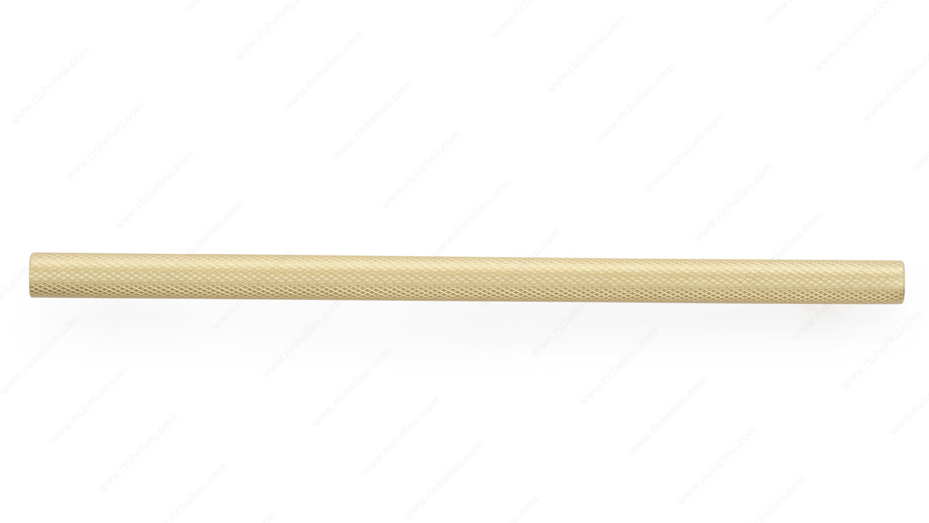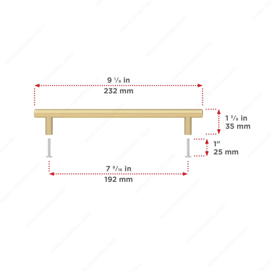 Richelieu BP3060192160 Modern Metal Pull - 3060 offers a sleek and sturdy design that enhances the aesthetic of any cabinetry or furniture. Crafted from high-quality aluminum, this pull features a beautiful satin brass finish that exudes elegance and sophistication. With an overall length of 9 1/8 inches and a center-to-center measurement of 7 9/16 inches, it provides the perfect grip for effortless opening and closing of drawers and doors. The contemporary styling of the BP3060192160 complements various design themes, making it a versatile choice for modern interiors. Its textured surface not only adds visual interest but also ensures a comfortable hold. Measuring 1 3/8 inches in projection and 15/32 inches in width, this pull is designed to fit seamlessly into your cabinetry. Included with this product are M4 screws measuring 25 mm in length, ensuring easy installation. Whether you are renovating a kitchen or upgrading your furniture, this metal pull is an ideal addition that promises durability and style. The Richelieu BP3060192160 is a part of the complete 3060 collection, allowing you to create a cohesive look throughout your space. Elevate your home’s decor with this timeless piece.