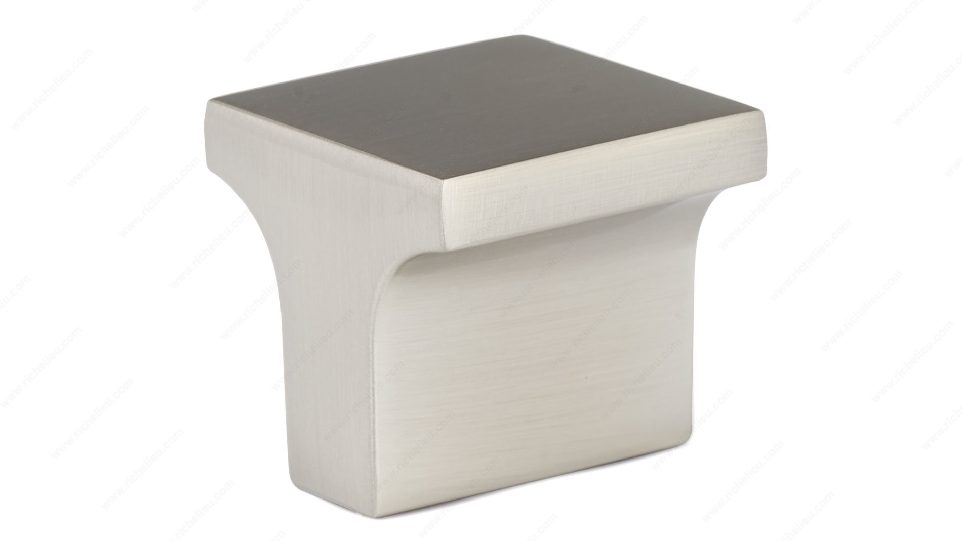 Richelieu BP312525195 Modern Metal Knob - 3125 brings a contemporary edge to your furniture and cabinetry with its sleek square design. This knob features a smooth surface complemented by stylish concave sides, making it an ideal choice for those looking to enhance their modern interiors. Crafted from durable Zamak, the knob boasts a brushed nickel finish in an elegant gray and chrome palette, ensuring it seamlessly integrates into various design schemes. With overall dimensions of 31/32 inches in length and width, and a projection of 29/32 inches, this knob offers a compact yet striking addition to your spaces. The included 8/32 inch screw ensures easy installation, allowing you to upgrade your cabinetry or furniture quickly and effectively. Part of the complete 3125/8232 collection, the BP312525195 is versatile enough to match with other hardware in the series, providing cohesion throughout your design. Whether you’re renovating a kitchen, updating a bathroom, or refreshing furniture pieces, this modern knob delivers both aesthetic appeal and functional quality. Elevate your décor with Richelieu’s exceptional craftsmanship and contemporary style.