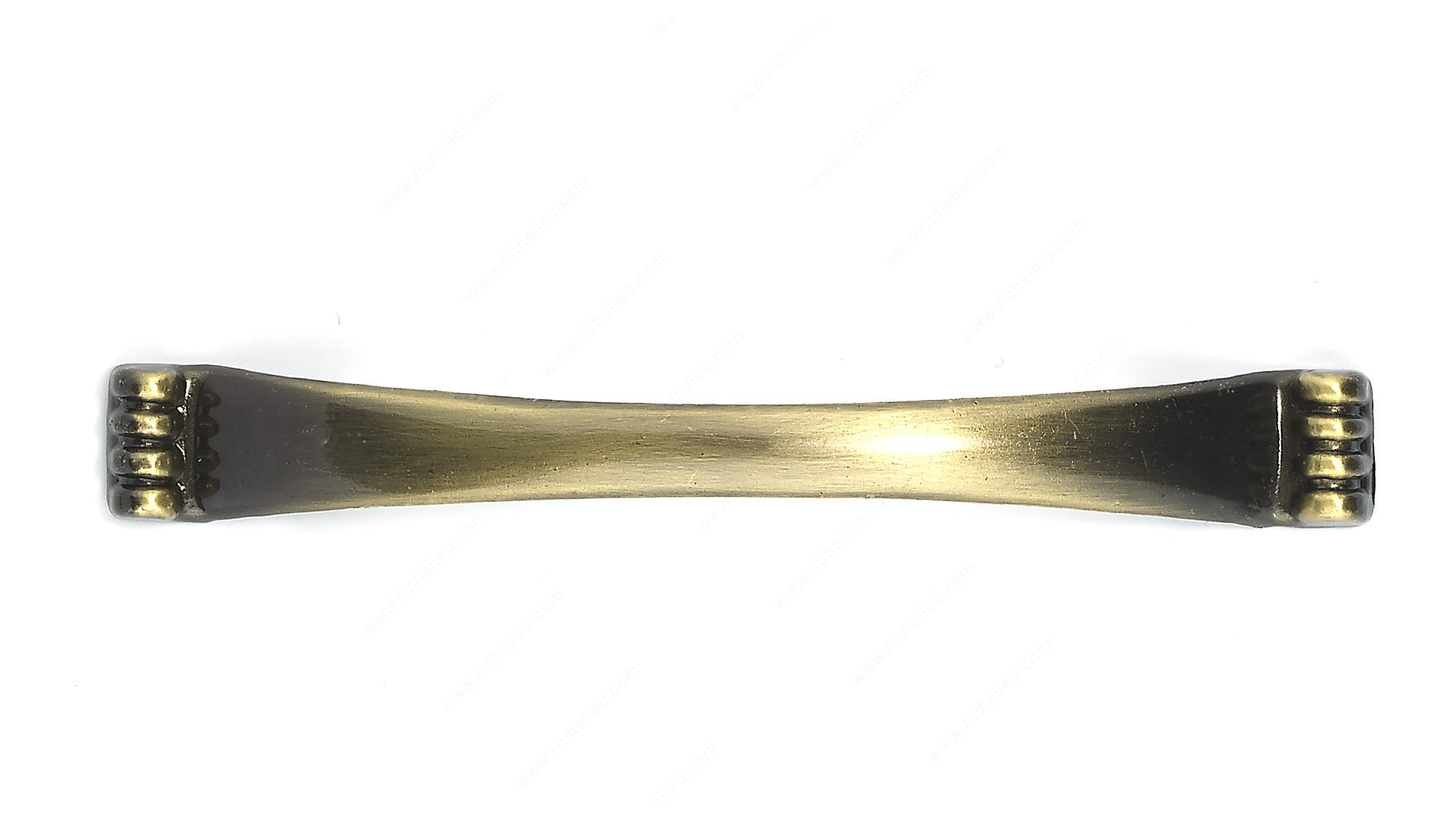 Richelieu BP34127AE Traditional Metal Pull - 3412 enhances your cabinets or furniture with a refined touch of elegance. This pull features a classic design complemented by ornamental grooves at both ends, making it a perfect fit for traditional and contemporary settings alike. Crafted from durable metal, it promises longevity while adding an aesthetic appeal to your spaces. With a center-to-center measurement of 3 inches, the pull measures an overall length of 4 9/16 inches, a width of 19/32 inches, and a projection of 25/32 inches, ensuring it fits comfortably in your hand. The Antique English finish offers a warm, inviting look in a captivating yellow and brass color palette, seamlessly integrating with various design themes. Included with the pull are 8/32 inch screws, facilitating a straightforward installation process. The Richelieu BP34127AE is not just a functional accessory; it’s a statement piece that embodies traditional craftsmanship. Perfect for kitchen cabinets, bathroom vanities, or furniture refinishing projects, this pull combines form and function, making it an essential addition for both building professionals and discerning homeowners. Elevate your décor with this versatile and stylish hardware solution.