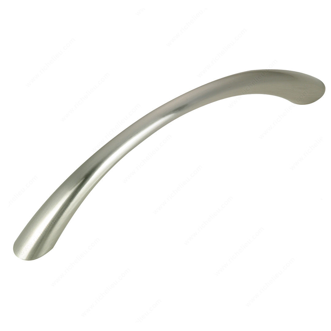 Richelieu BP3511128195 Modern Metal Pull - 3511 embodies a sleek and contemporary design, perfect for enhancing the aesthetic of your furniture or cabinetry. This modern bow pull features elegantly flared ends, offering both style and functionality. Crafted from durable zamak, it ensures longevity while maintaining a refined appearance. With a center-to-center measurement of 5 1/32 inches, this pull is easy to install, allowing for a quick upgrade to your existing pieces. The brushed nickel finish adds a touch of sophistication, complemented by a gray and chrome color scheme that fits seamlessly into various interior styles. The overall dimensions of the pull measure 5 25/32 inches in length, 1 1/16 inches in projection, and 13/32 inches in width, making it a versatile choice for different applications. Included with the pull are 8/32 inch screws, facilitating straightforward installation. Packaged in a convenient bag, the Richelieu BP3511128195 pull is designed for professionals and knowledgeable homeowners alike who seek quality and elegance in their hardware choices. Elevate your space with this modern pull that combines aesthetic appeal with practical design.