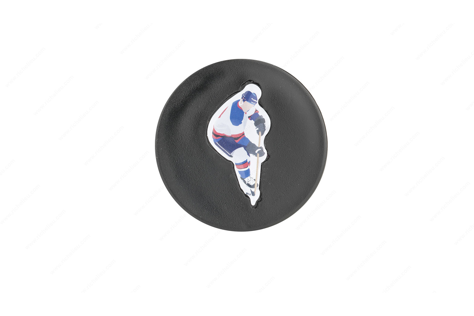 Richelieu BP366950900 Eclectic Plastic Knob- 3669 is the perfect finishing touch for any furniture or cabinetry project, especially for hockey enthusiasts of all ages. Designed in a playful puck shape, this knob adds a unique flair while still maintaining functionality. Measuring 1 31/932 inches in diameter and featuring a matte black finish, it seamlessly blends with a variety of decors. Constructed from durable plastic, the knob not only exudes style but is also built to withstand everyday use. Its base diameter of 11/32 inches and a projection of 29/32 inches ensure a comfortable grip for easy operation. This model is part of Richelieu's new collection, showcasing a commitment to innovative and eclectic designs. Installation is a breeze, as the knob comes with an 8/32 inch screw included, making it simple to attach to any cabinet or drawer. The sleek black color and modern design make it a versatile choice for both residential and commercial spaces. Whether you're looking to revamp a child's room or add a touch of personality to a living space, the Richelieu BP366950900 Eclectic Plastic Knob is a delightful and practical addition to your project.