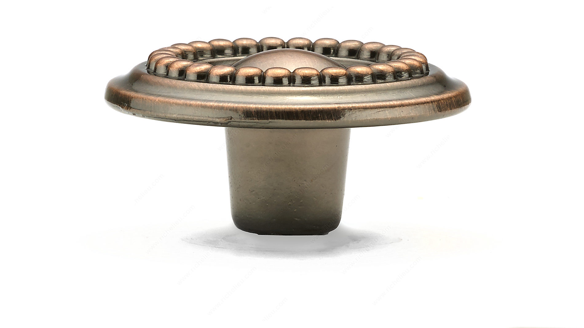 Richelieu BP37585193 Traditional Metal Knob - 3758 boasts an exquisite design that enhances the aesthetic appeal of your kitchen or bathroom. With its charming beaded border, this knob adds a touch of elegance that complements various decor styles. Crafted from durable metal, it features an antique copper finish that exudes warmth and sophistication, making it a perfect choice for both contemporary and traditional settings. Measuring 1 9/16 inches in diameter and with a projection of 25/32 inches, this knob fits comfortably in hand, ensuring ease of use while maintaining a refined look. The stunning color options-Red, Rose, and Rust-allow for versatile design possibilities, enabling you to coordinate with existing fixtures or create a bold statement. Installation is hassle-free with the included 8/32 inch screw, allowing you to quickly upgrade your cabinetry or furniture. The model, designed under the Village line, showcases Richelieu's commitment to quality and style, making it a reliable choice for building professionals and discerning homeowners alike. Whether you're renovating or simply adding finishing touches, the Richelieu BP37585193 knob is sure to elevate your space with its timeless beauty and functionality.
