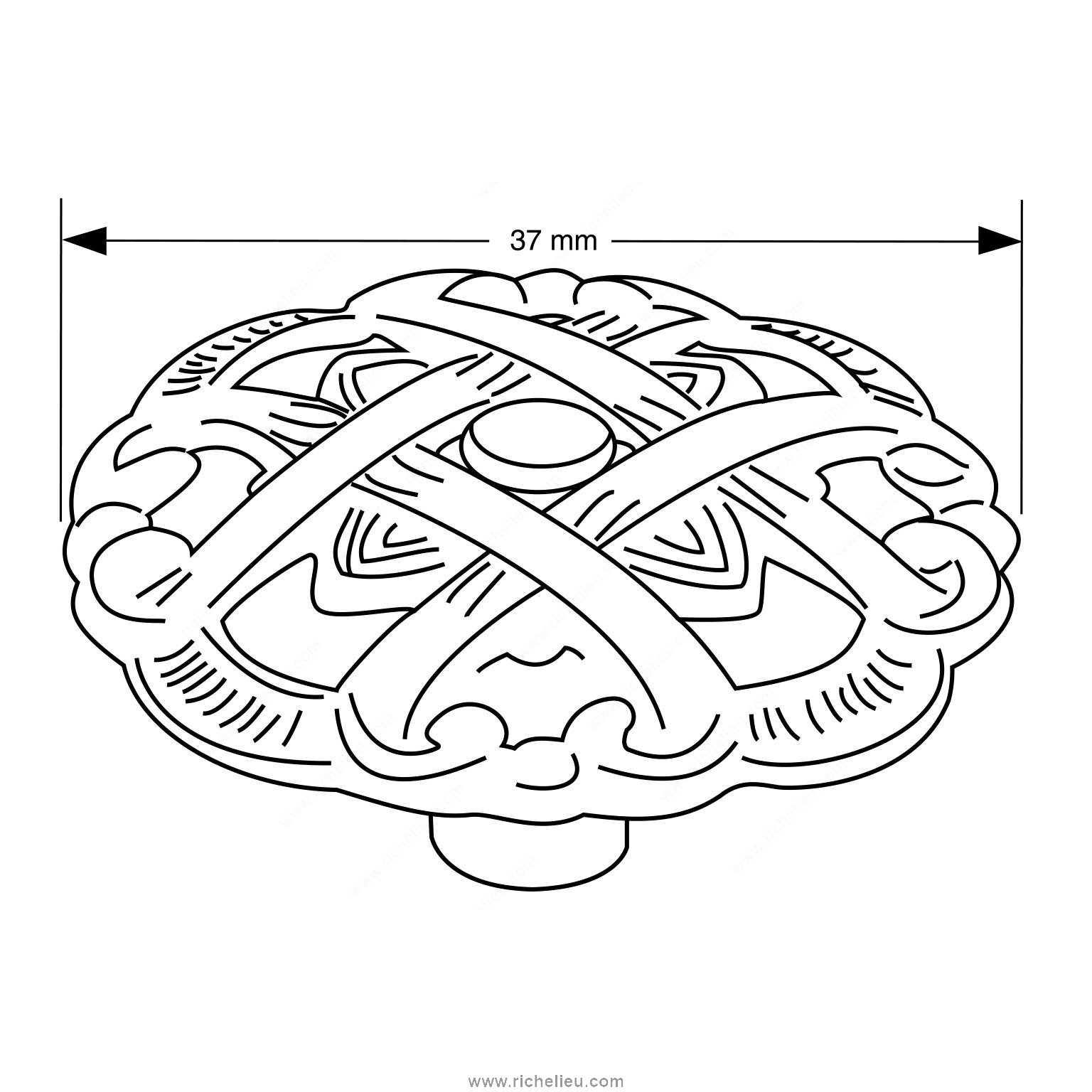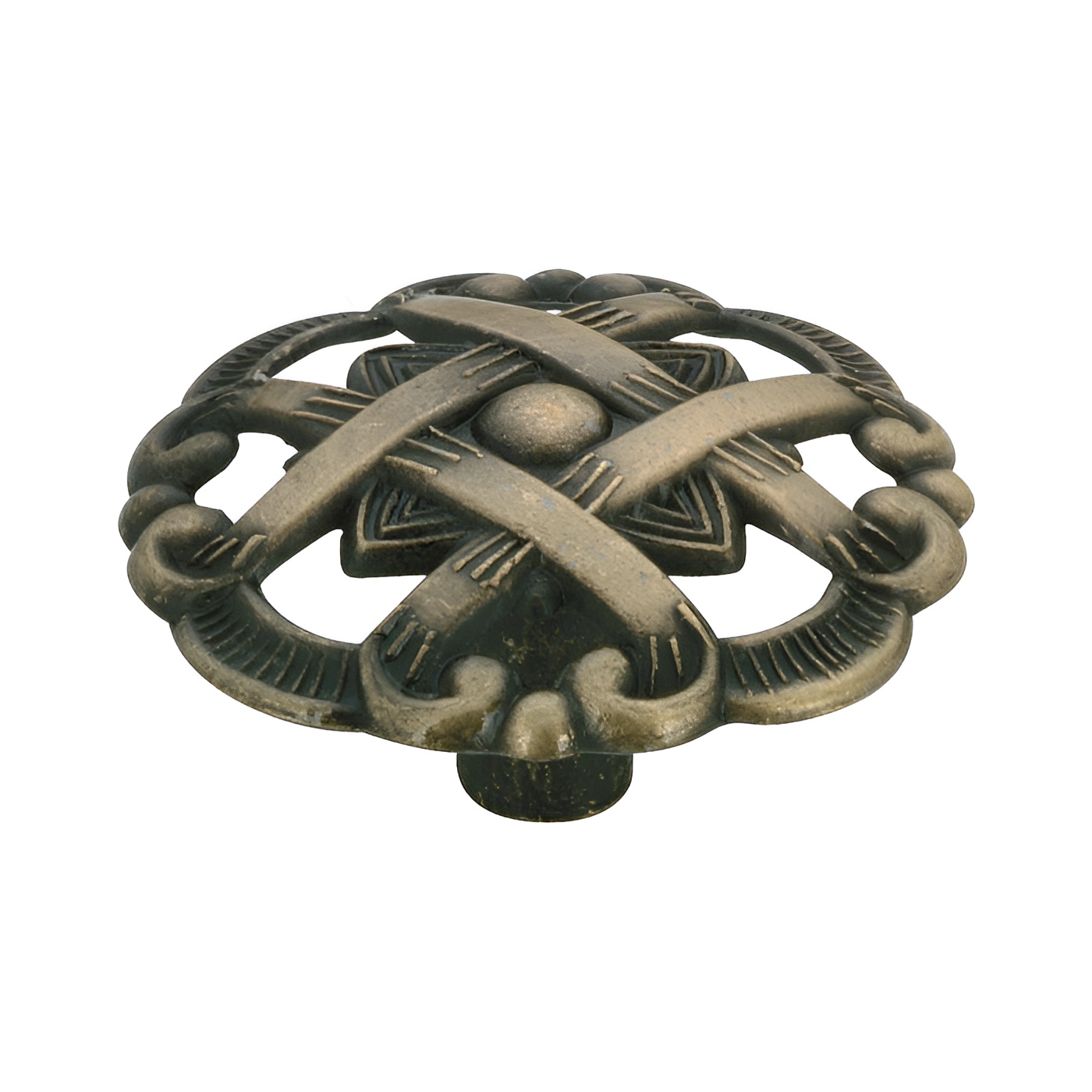 Richelieu BP37700AE Traditional Metal Knob - 3770 features an exquisite basketweave design, making it an ideal choice for enhancing the aesthetic of kitchen and bathroom cabinets. Its intricate detailing adds a touch of charm and sophistication, perfectly suited for both classic and contemporary decors. Crafted from durable metal and finished in Antique English, this knob not only looks elegant but is also built to withstand daily use. With an overall diameter of 1 15/32 inches and a projection of 25/32 inches, it offers a comfortable grip while maintaining a compact profile that won’t overpower your cabinetry. Available in a striking combination of yellow and brass, the Richelieu 3770 knob serves as a stylish accent that draws the eye without overwhelming your space. The included 8/32 inch screw ensures easy installation, allowing you to upgrade your cabinetry quickly and efficiently. Designed in the traditional style, this knob is part of the Village collection, showcasing timeless craftsmanship that will elevate any room. Whether you're a building professional or a discerning homeowner, this knob is a perfect blend of functionality and beauty that will enhance your cabinetry for years to come.