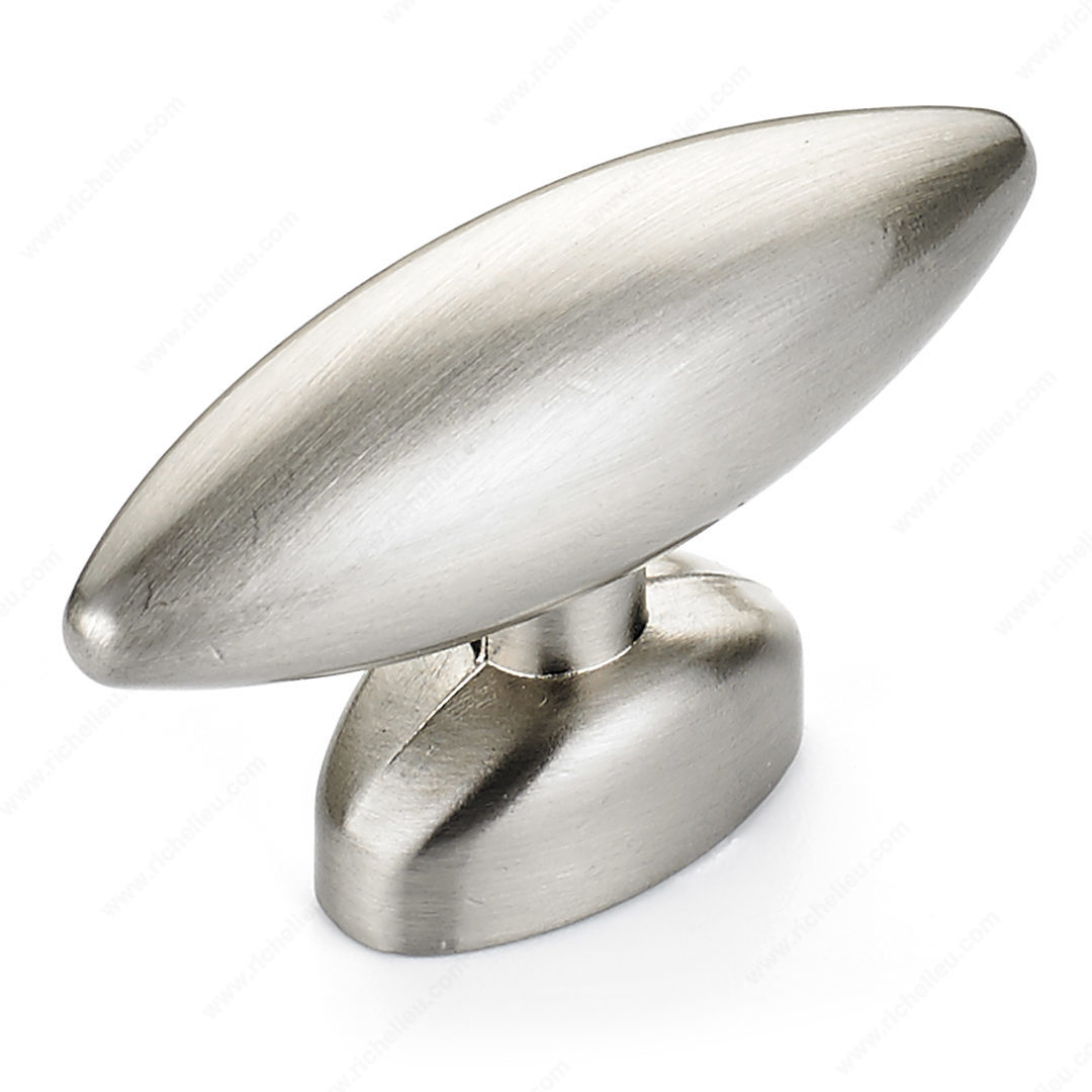 Richelieu BP38197195 Modern Metal Knob - 381 offers a sleek and contemporary design that effortlessly enhances any space. Crafted from durable Zamak, this knob features a brushed nickel finish that not only adds a touch of elegance but also ensures longevity and resistance to wear. Its understated gray and chrome color palette seamlessly complements modern cabinetry and furniture, making it an ideal choice for both residential and commercial projects. Measuring 1 17/32 inches in length, 15/32 inches in width, and with a projection of 29/32 inches, this knob is designed for ease of use while maintaining a minimalist aesthetic. The package includes an 8/32 inch screw for straightforward installation, providing convenience for builders and DIY enthusiasts alike. With its modern style and clean lines, the Richelieu BP38197195 is perfect for those looking to achieve a sophisticated look without compromising functionality. The knob's simple yet striking design allows it to blend seamlessly into various design themes, from contemporary kitchens to stylish office spaces. Elevate your project with this essential hardware that combines form and function, making it a must-have addition to your design toolkit.