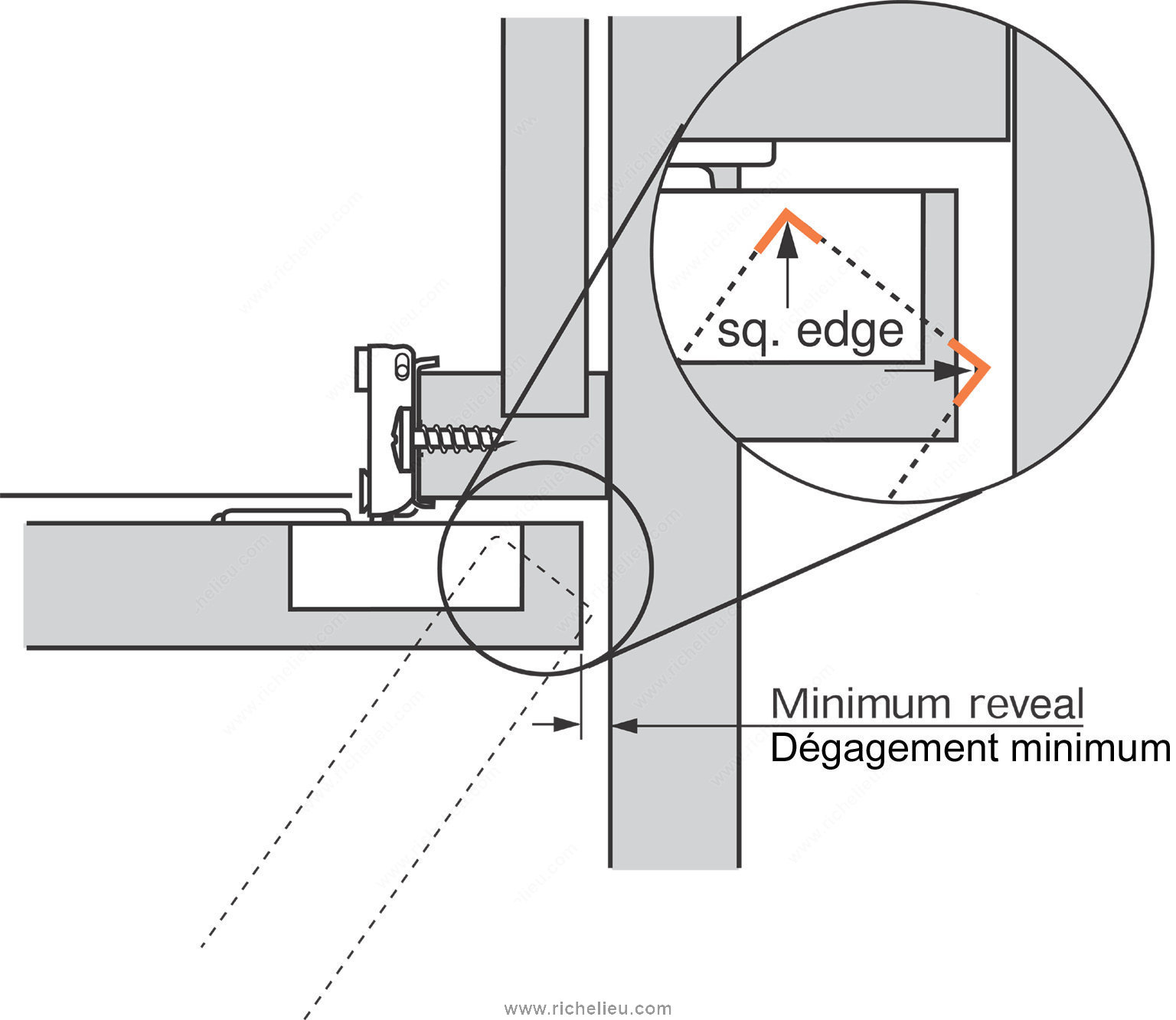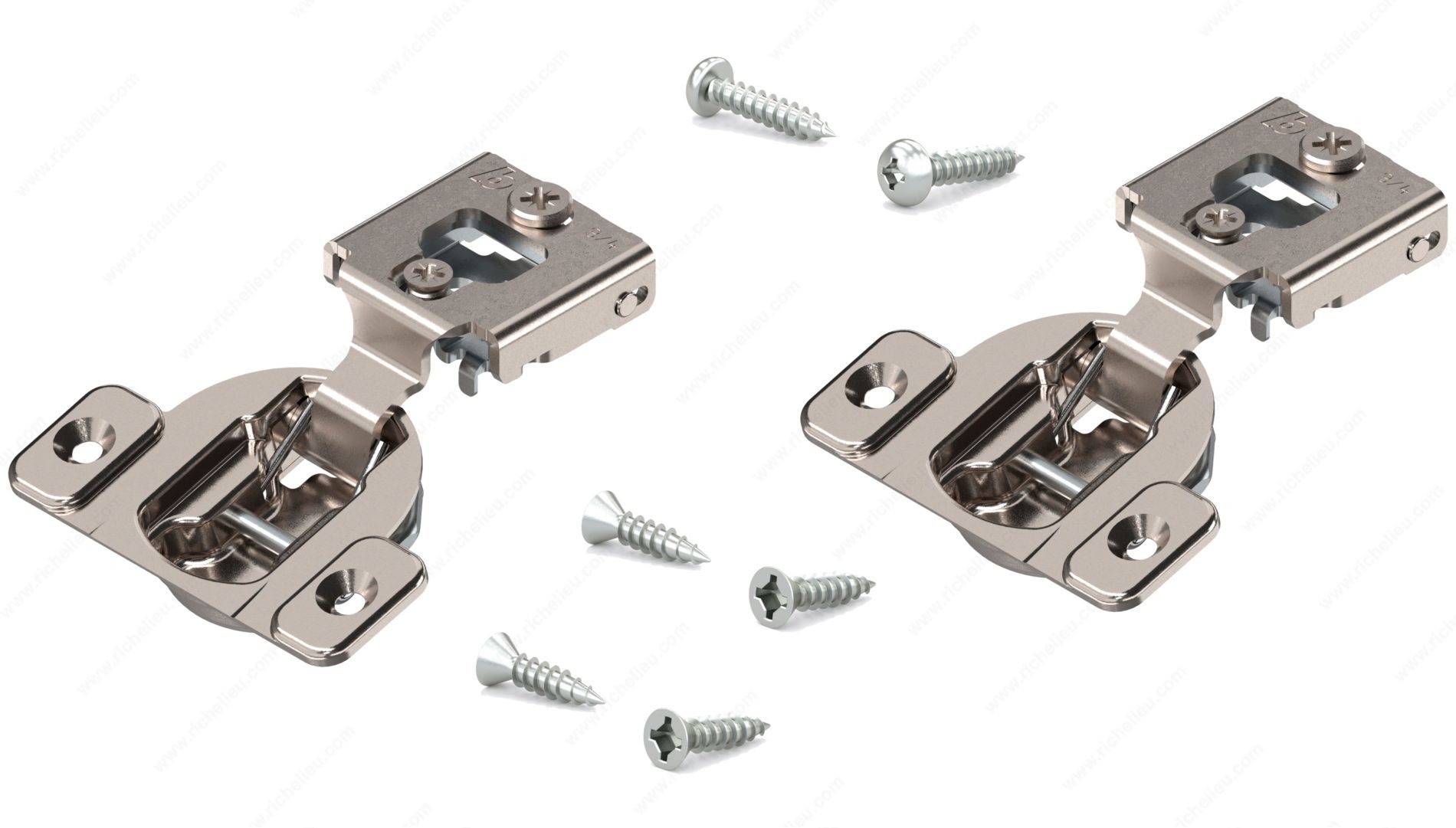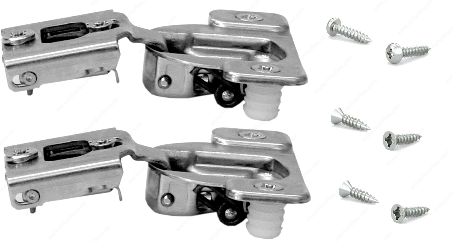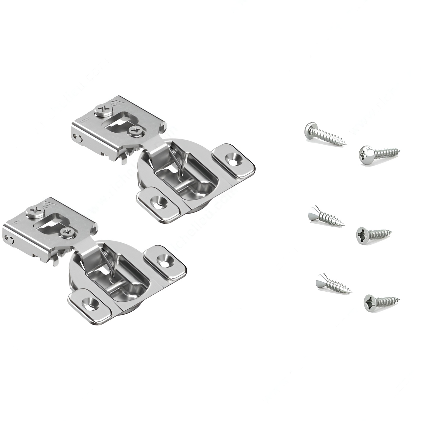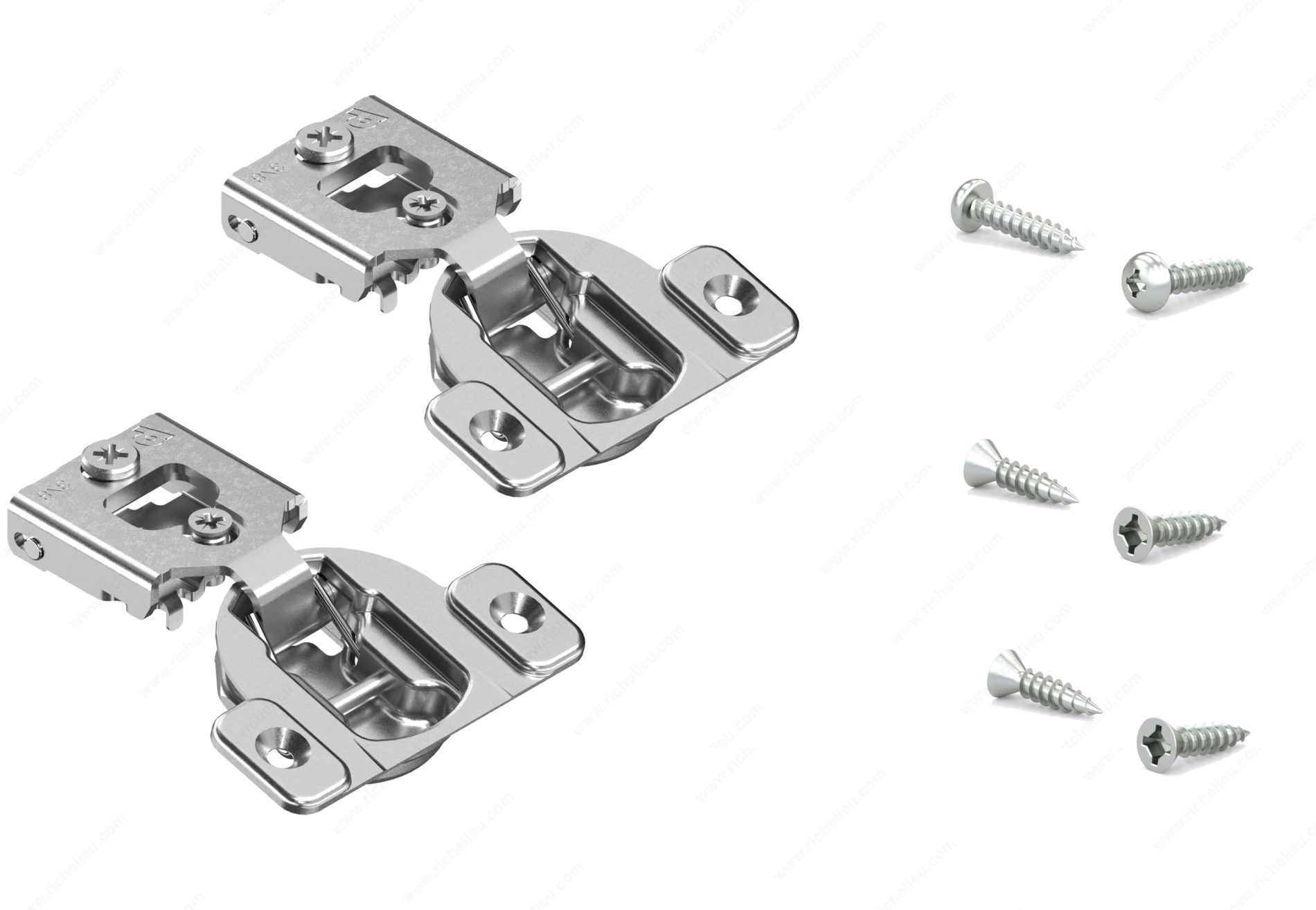 Richelieu BP38N35512180S COMPACT 38N Hinge 105 offers a seamless solution for face frame cabinets, combining functionality with ease of use. These concealed hinges are designed for both small and large overlays, making them suitable for a variety of cabinetry applications. With an adjustable design that allows for side, height, and depth adjustments, they ensure a perfect fit for your projects. Constructed from durable steel, the hinge supports a maximum cabinet and door thickness of 3/4 inch, making it robust enough for standard doors. The hinge opening angle of +105° provides ample access, enhancing the user experience. Each hinge features a spring closing mechanism, ensuring that doors close securely and smoothly every time. This product comes with a wrap-around mount for straightforward installation and includes a plate and screws for added convenience. Packaged in bags of two units, the Richelieu BP38N35512180S is a reliable choice for builders and homeowners alike looking for quality and performance. With a milling depth of 7/16 inch and a diameter of 1 3/8 inch, this hinge is designed for precision. Elevate your cabinetry with this essential component that combines innovation and practicality.