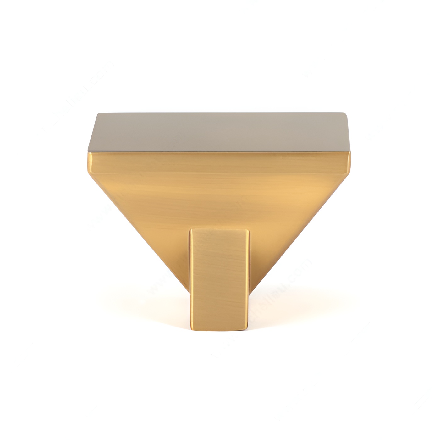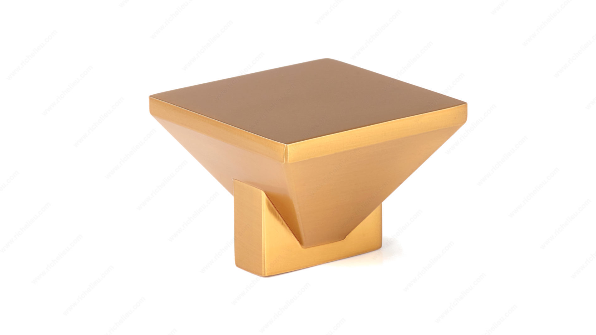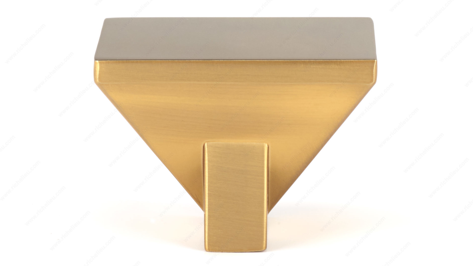 Richelieu BP404016158 Modern Metal Knob - 4040 showcases a striking square design with inward sloping sides, delivering an ultramodern aesthetic that enhances any furniture or cabinetry. Crafted from durable zamak, this knob ensures longevity while maintaining a sleek appearance. The brushed aurum gold finish (Finish Number: 158) adds a touch of sophistication and warmth, perfectly complementing contemporary interiors. With overall dimensions of 1 9/16 inches in length and width, and a projection of 1 5/32 inches, this knob is both functional and stylish. It features a center-to-center measurement of 5/8 inch, making it an ideal choice for various applications. The included 8/32 inch screw ensures easy installation, allowing for a hassle-free upgrade to your cabinetry or furniture. Part of the complete collection (4040/8189), this knob can be seamlessly integrated with other pieces for a cohesive look. Available for shipping via UPS, the Richelieu BP404016158 is perfect for building professionals and discerning homeowners looking to elevate their space with modern hardware. Transform your cabinetry with this exquisite knob that combines form and function effortlessly.