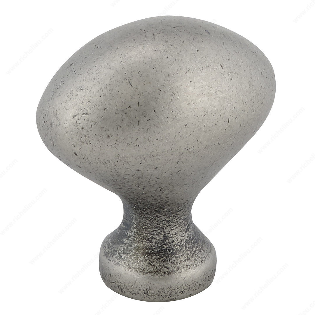 Richelieu BP4443142 Traditional Metal Knob - 4443 embodies timeless elegance with its oval shape and slightly flared base, making it a perfect addition to your furniture and cabinetry. Crafted from durable zamak, this knob ensures longevity while offering a sophisticated touch to any space. The classic pewter finish adds a refined charm, complementing both modern and traditional designs. Measuring 1 3/16 inches in length, 25/32 inches in width, and with a projection of 1 5/16 inches, this knob is ergonomically designed for comfortable use. Its traditional style provides a seamless integration into various interiors, enhancing the overall aesthetic. Richelieu's commitment to quality is evident in the BP4443142, which includes an 8/32 inch screw for easy installation, ensuring that you can effortlessly upgrade your cabinets or furniture. The combination of gray and chrome accents in the finish enhances its visual appeal while maintaining a classic look. Ideal for both building professionals and discerning homeowners, this knob not only elevates your design but also offers functionality. Available for shipping via UPS, the Richelieu BP4443142 Traditional Metal Knob is a practical and stylish choice for any renovation project.
