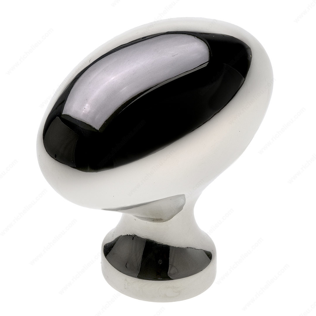 Richelieu BP444350180 Traditional Metal Knob - 4443 embodies a timeless design that enhances both furniture and cabinetry. The oval shape, complemented by a slightly flared base, brings a classic touch to any space. Crafted from high-quality Zamak, this knob combines durability with elegant aesthetics, making it a perfect choice for various styles and environments. With an overall length of 1 31/32 inches and a width of 1 3/32 inches, the knob fits seamlessly into existing décor while providing a comfortable grip. The polished nickel finish in gray and chrome adds a sophisticated shine, ensuring that it stands out without overwhelming the overall design. This knob is part of Richelieu's New Collection, reflecting a commitment to modern innovation while honoring traditional craftsmanship. Installation is straightforward, as it comes with an 8/32 inch screw included, allowing for easy mounting. With a projection of 1 25/32 inches, it offers ample space for hand operation while maintaining a sleek profile. Ideal for homeowners and professionals alike, the Richelieu BP444350180 knob is a versatile accessory that enhances functionality and style in any setting.