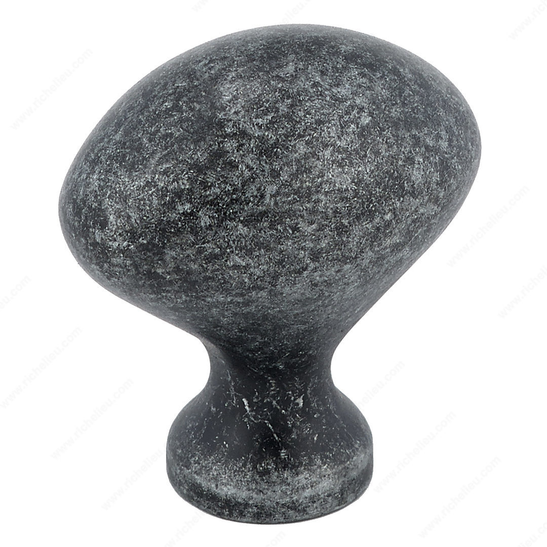 Richelieu BP4443908 Traditional Metal Knob - 4443 embodies classic elegance with its oval shape and slightly flared base, making it an ideal choice for enhancing furniture and cabinetry. Crafted from durable Zamak, this knob combines both strength and aesthetic appeal, ensuring a long-lasting addition to your projects. The natural iron finish, presented in a sophisticated gray and chrome color palette, complements a variety of design styles, from traditional to contemporary. Measuring 1 3/16 inches in length and 25/32 inches in width, this knob is perfectly sized to provide a comfortable grip while maintaining a sleek profile. With a projection of 1 5/16 inches, it offers ample space for easy access. Richelieu designed this product with practicality in mind, including an 8/32 inch screw for straightforward installation. The classic design not only enhances the visual appeal of cabinets and furniture but also adds functionality, ensuring that your spaces are both beautiful and efficient. Whether you are a building professional seeking quality hardware or a knowledgeable homeowner looking to elevate your interiors, the Richelieu BP4443908 knob is a versatile choice that brings timeless charm to any setting.