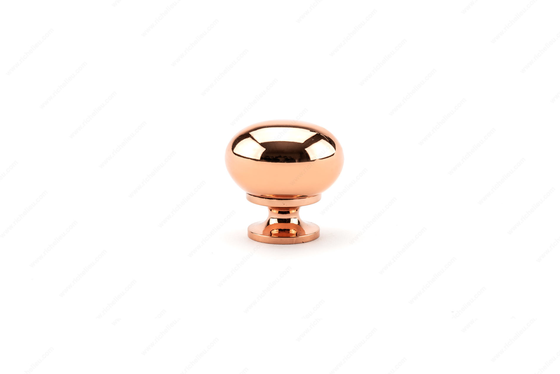 Richelieu BP4923191 Traditional Brass Knob - 4923 enhances the elegance of any kitchen or bathroom space with its timeless design. This mushroom knob, a classic addition to your home décor, showcases a polished copper finish that beautifully complements a variety of styles. With a diameter of 1 1/4 inches and a base diameter of 3/4 inch, this knob is perfectly sized for both functionality and aesthetic appeal. Crafted from durable brass and hollow metal, the knob promises longevity while maintaining its stunning appearance. The rich color options-red, rose, and rust-add a unique touch that can transform cabinetry and furniture alike. The knob's projection measures 1 3/16 inches, providing a comfortable grip for utility purposes. Installation is straightforward, as the knob comes with an 8/32 inch screw included in the packaging. Each knob is conveniently packaged in a bag, ready for immediate use. Whether you are renovating your space or simply updating hardware, the Richelieu BP4923191 Traditional Brass Knob is an exceptional choice for those seeking quality and style. Elevate your home with this exquisite piece that marries functionality with a classic aesthetic.