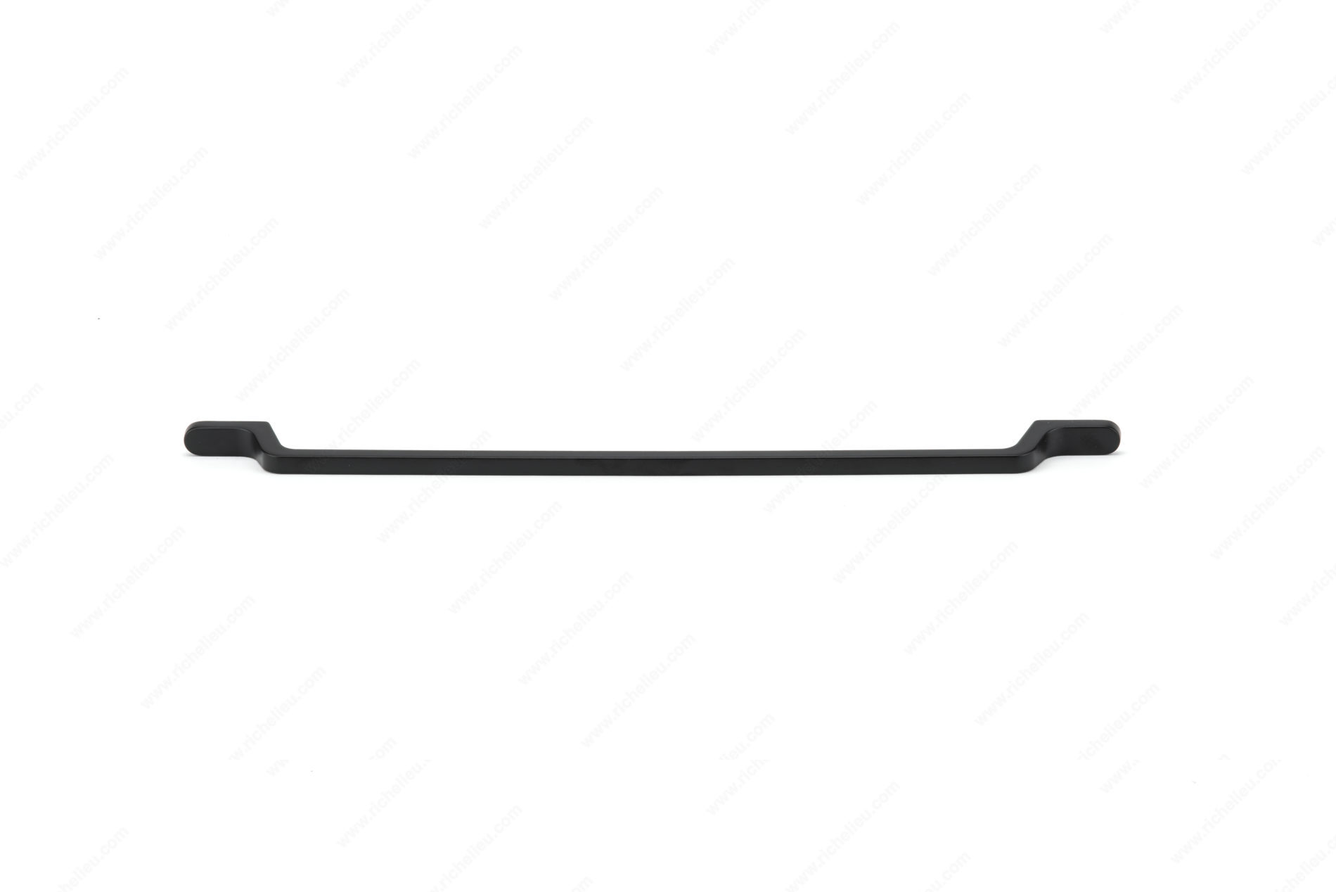 Richelieu BP52010320900 Modern Metal Pull - 52010 showcases a sleek and contemporary design, making it an ideal choice for modern cabinetry and drawers. With its clean lines and elongated bases, this slender pull adds a sophisticated touch to any space. Crafted from durable zamak, it ensures longevity and stability, making it suitable for both residential and commercial applications. The pull features a matte black finish, providing a striking contrast against lighter surfaces and seamlessly integrating with various design styles. Measuring 15 1/4 inches in length and with a center-to-center distance of 12 5/8 inches, it is well-proportioned to fit a wide range of drawer sizes. Additionally, the overall projection of 1 5/32 inches offers a comfortable grip, enhancing usability. Included with the pull are 8/32 inch screws, ensuring a straightforward installation process. The modern aesthetic of the Richelieu BP52010320900 complements all collections under the 52010 model, making it a versatile addition to your hardware selection. Ideal for professionals and discerning homeowners alike, this pull not only elevates the look of your cabinetry but also delivers on functionality and style.