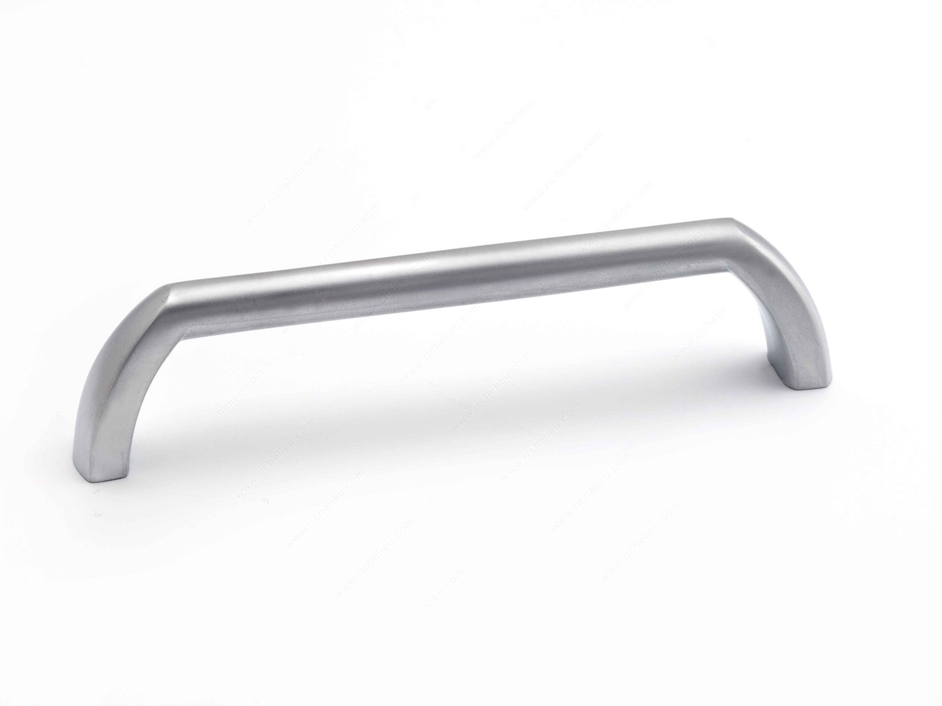 Richelieu BP5232896174 Modern Metal Pull - 5232 combines contemporary design with functional elegance. This modern pull features a sleek tubular center, seamlessly contrasted by its arched, delicately contoured posts, making it an ideal choice for a variety of cabinetry and furniture styles. With a center-to-center measurement of 3 25/32 inches, this pull is perfectly sized for standard installations, ensuring compatibility with a wide range of drawers and doors. The matte chrome finish, numbered 174, not only enhances its aesthetic appeal but also provides durability, resisting wear and tear in everyday use. Crafted from high-quality zamak, the pull boasts a sturdy construction that promises longevity. Measuring 4 1/32 inches in overall length, 15/32 inches in width, and with a projection of 15/16 inches, this pull is designed for comfort and ease of use. Each pull includes M4 screws for straightforward installation. Available in a sophisticated gray and chrome colorway, the Richelieu BP5232896174 is a standout accessory that adds a modern touch to kitchens, bathrooms, and furniture alike, making it a must-have for both building professionals and discerning homeowners.