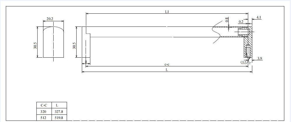 Center to Center: 512 mm