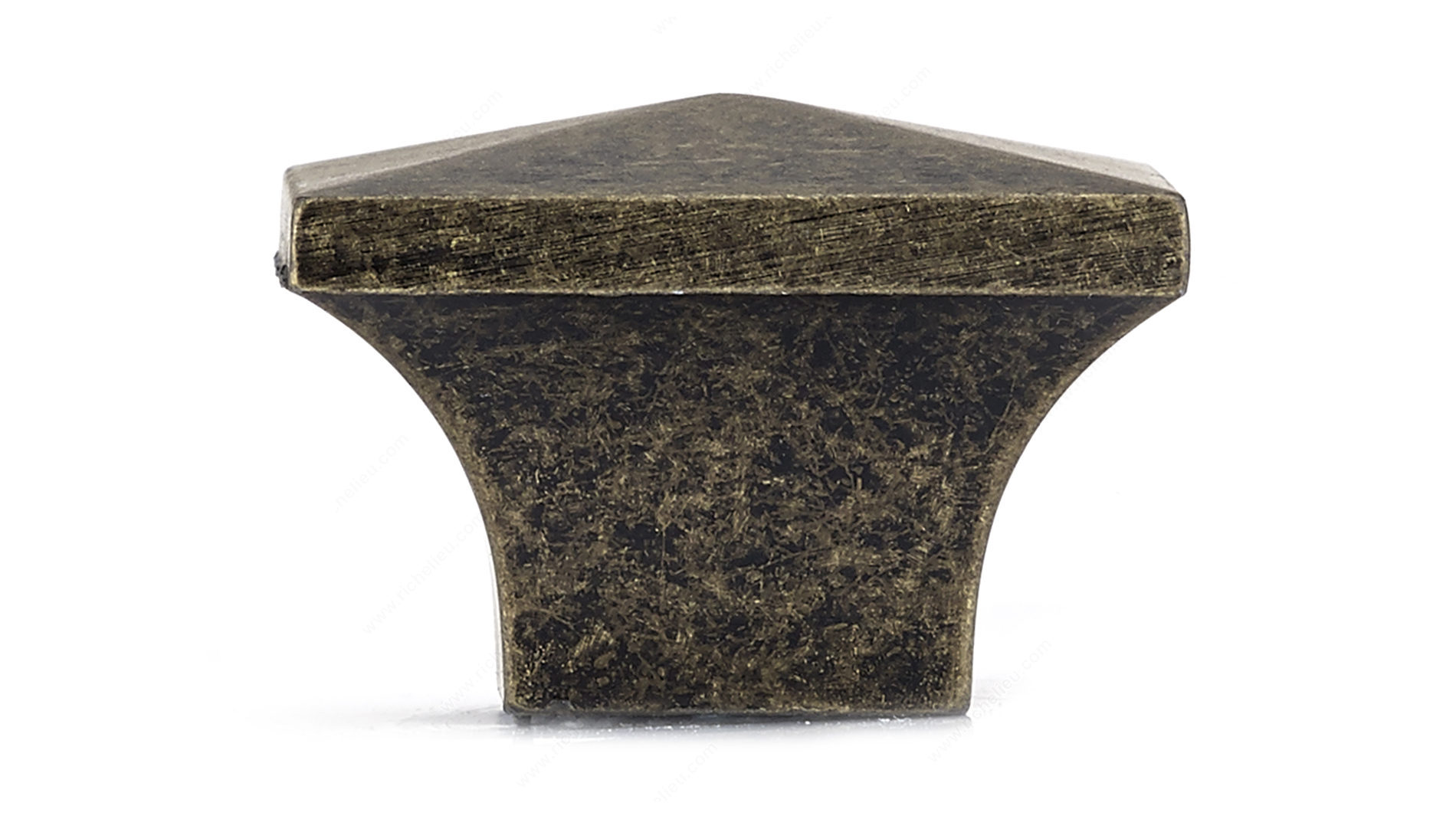 Richelieu BP53082BB Traditional Metal Knob - 5308 is a classic square knob designed with a flared base, making it an ideal choice for furniture and cabinets that feature simple, clean lines. Its distinctive raised pyramid shape adds a touch of elegance and versatility, seamlessly complementing a variety of décor styles, from traditional to contemporary. Crafted from high-quality zamak, this knob ensures durability and longevity. The burnished brass finish, with its warm yellow tones, provides a sophisticated look that enhances the overall aesthetic of your cabinetry. Measuring 1 1/4 inches in length and width, with a projection of 7/8 inch, the knob is perfectly sized for comfortable grip and ease of use. Each knob comes with an included 8/32 inch screw for hassle-free installation, ensuring that you can quickly upgrade your space without any additional purchases. Whether you are renovating a kitchen, bathroom, or living area, the Richelieu BP53082BB knob will elevate the look of your furniture and cabinetry effortlessly. Enjoy the blend of style and functionality that this traditional metal knob offers, making it a timeless addition to your home.