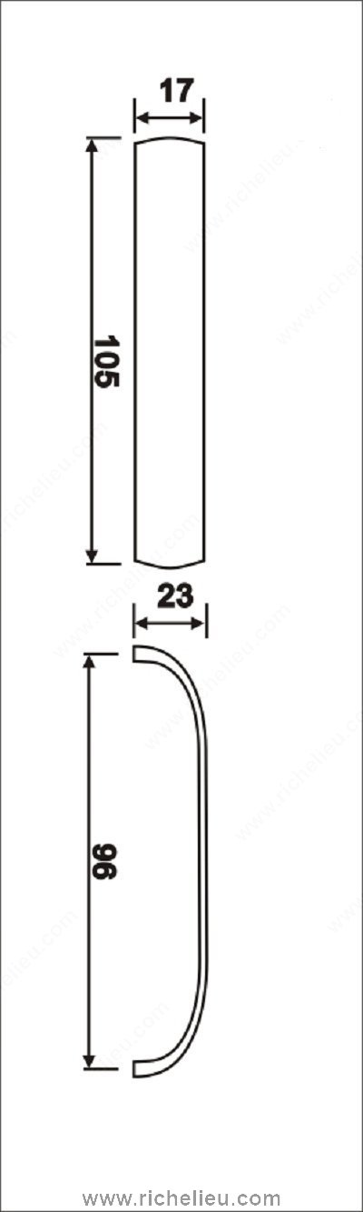 Richelieu BP5625696174 Modern Metal Pull - 5625 offers a sophisticated blend of style and functionality, making it an ideal choice for kitchen and bathroom renovations. The design features a wide curved surface that contrasts elegantly with a slender grip, providing both comfort and aesthetic appeal. Crafted from durable Zamak, this pull not only enhances your cabinetry but also ensures long-lasting performance. With an overall length of 4 1/16 inches and a center-to-center measurement of 3 25/32 inches, the BP5625696174 fits perfectly in various applications. Its modern matte chrome finish in gray and chrome elevates the look of any space, seamlessly integrating into contemporary designs. The overall projection of 31/32 inches and a width of 21/32 inches make it functional while retaining a sleek profile. Installation is straightforward with included M4 screws, ensuring that you can enhance your cabinetry quickly and efficiently. Whether you are upgrading hardware for a new build or refreshing existing cabinetry, this modern metal pull is a versatile option that speaks to quality and style. Choose the Richelieu BP5625696174 for a touch of elegance that complements your home’s decor beautifully.