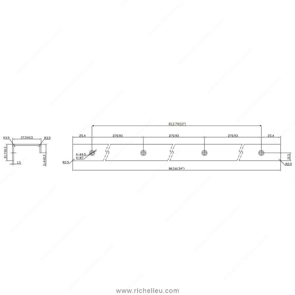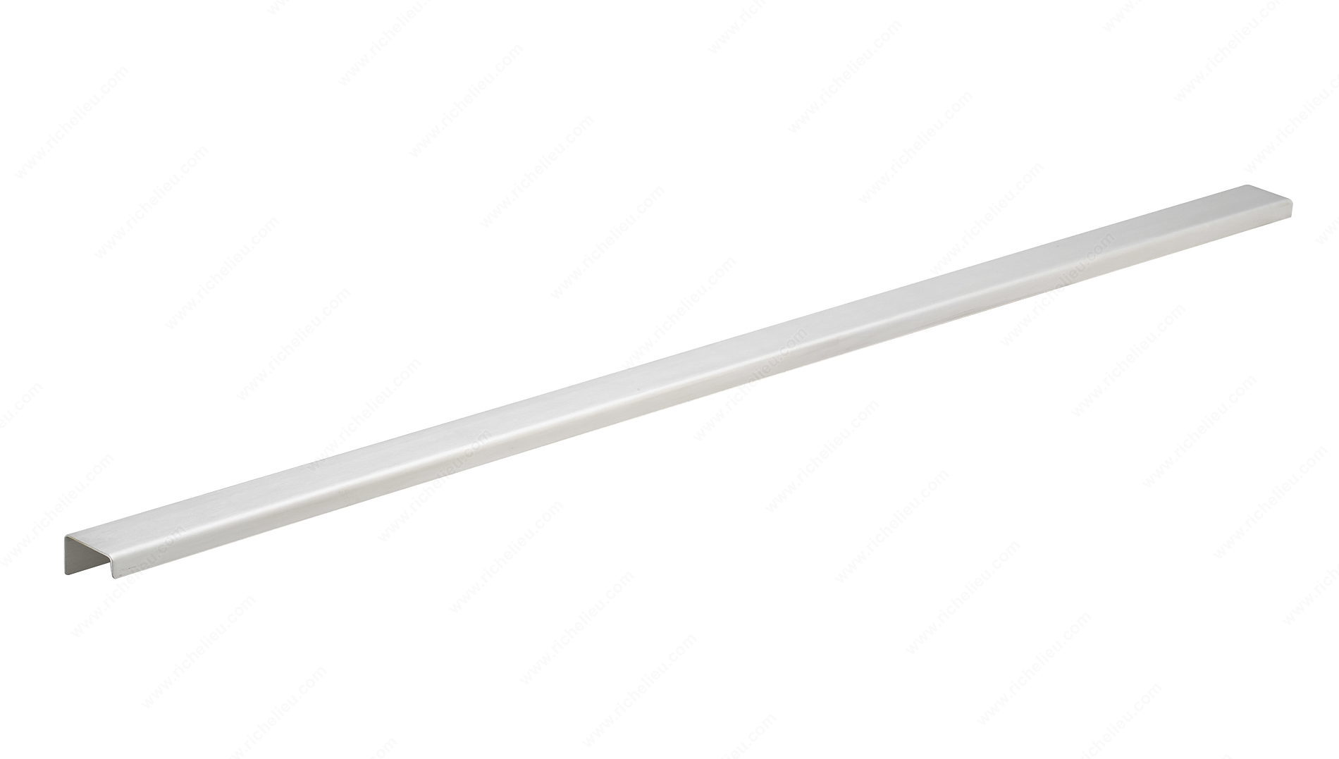 Richelieu BP57634170 Modern Stainless Steel Edge Pull - 576 offers a sophisticated solution for enhancing your furniture with its sleek, contemporary design. Thoughtfully crafted from 304 stainless steel, this edge pull is not only durable but also provides a smooth surface that seamlessly integrates into a variety of decors. The modern aesthetic is complemented by a chic gray and chrome finish, making it an ideal choice for both residential and commercial applications. Measuring 34 inches in overall length with a 32-inch center-to-center distance, this edge pull is designed for easy installation, featuring included wood screws for your convenience. Its projection of 7/16 inch and a width of 1 1/2 inches ensure a comfortable grip while maintaining a low profile that won’t overwhelm your furniture’s appearance. As part of the complete 576 collection, the BP57634170 is perfect for those looking to unify their hardware choices across different pieces. Whether you are updating kitchen cabinetry or enhancing a modern living space, this edge pull stands out as a functional yet stylish accent. Elevate your interiors with Richelieu's commitment to quality and design.