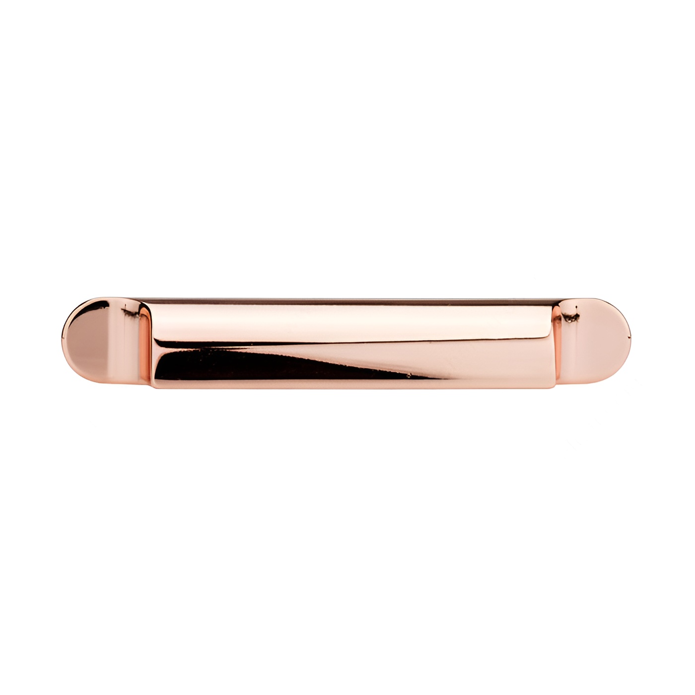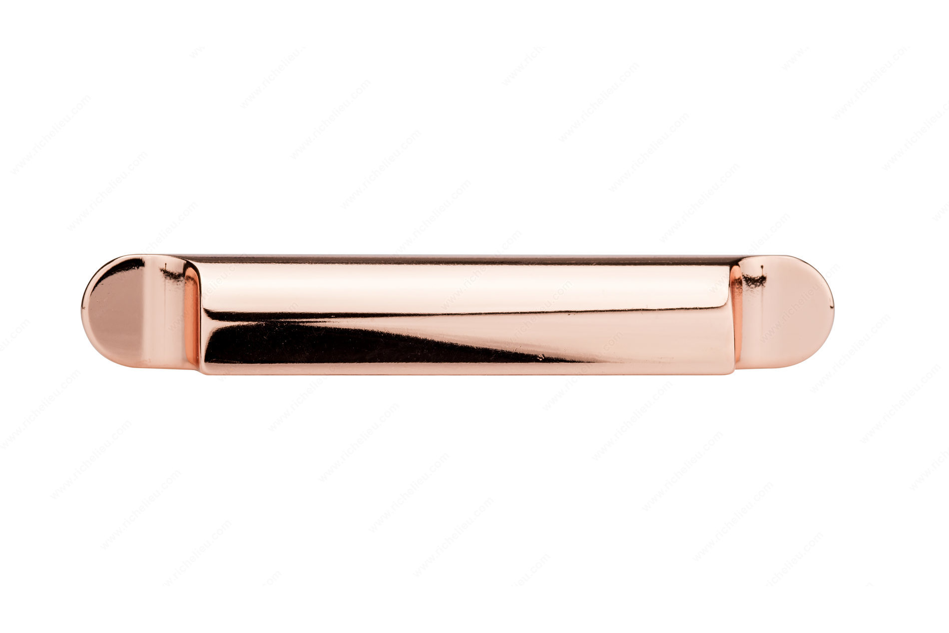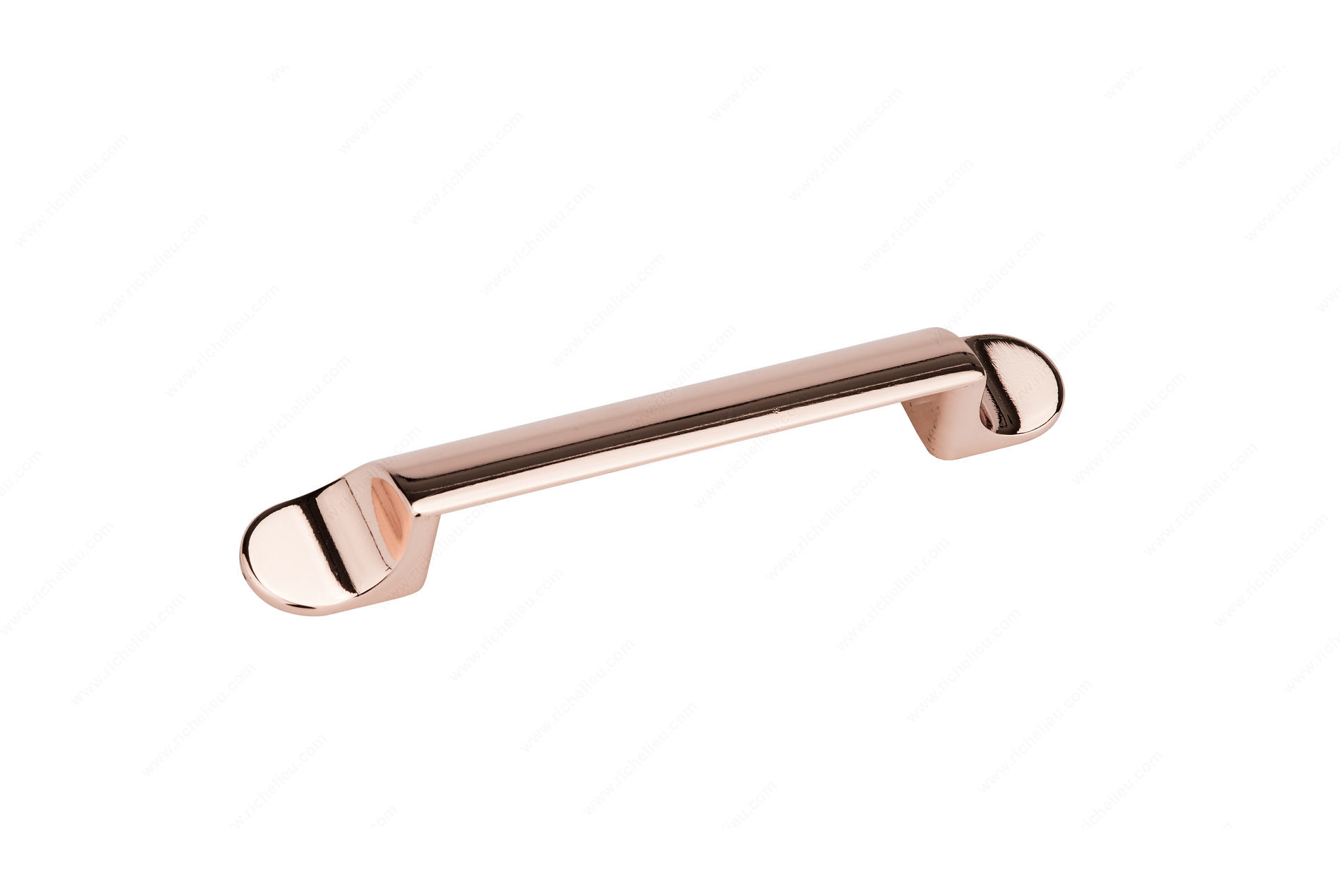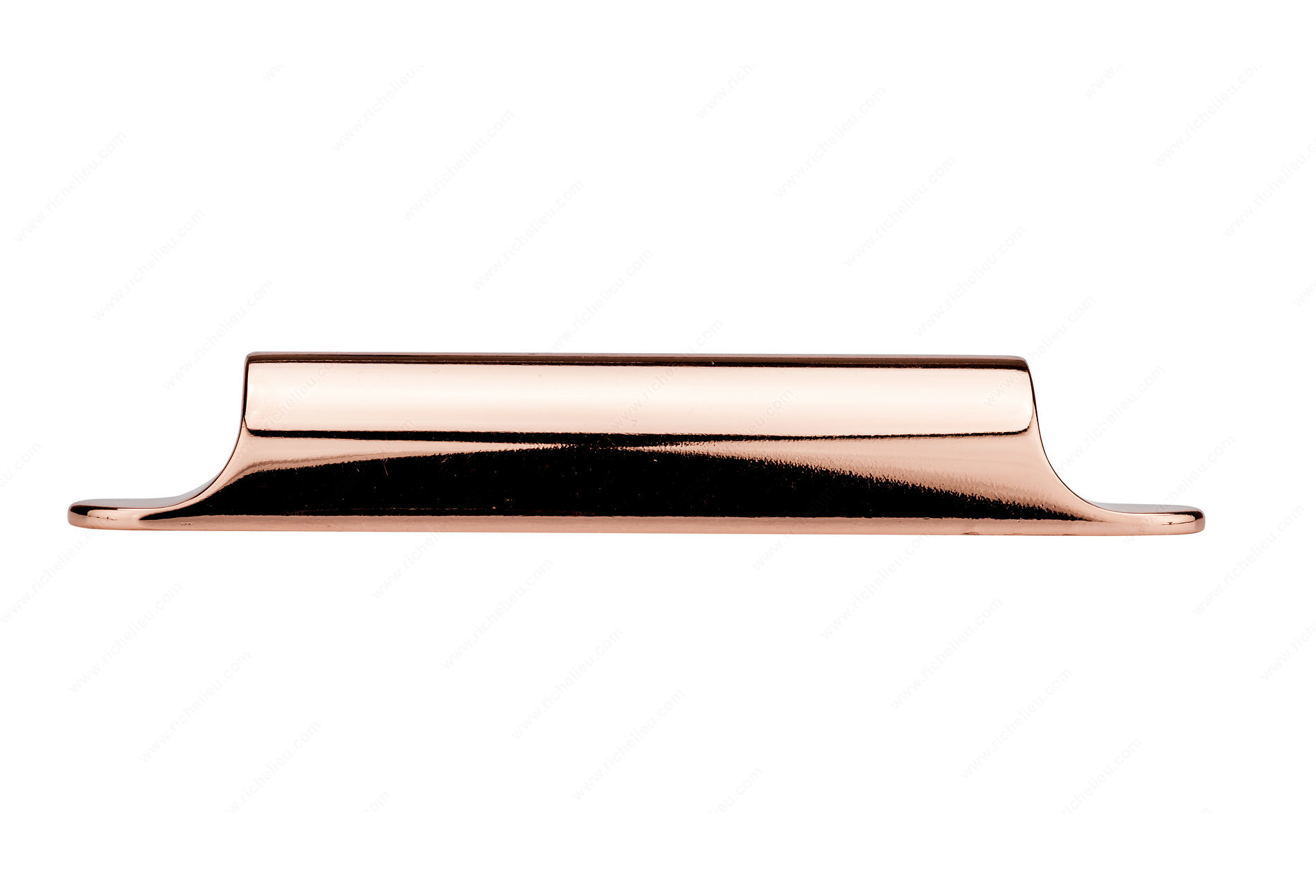 Richelieu BP61675296191 Modern Metal Pull - 6167 is a stylish half-round foot cup pull designed to enhance the aesthetic of drawer fronts with its sleek and contemporary profile. Measuring 5 21/32 inches in overall length and featuring a 3 25/32-inch center-to-center distance, this pull is perfect for a variety of cabinetry applications. Crafted from durable Zamak, it combines strength with a modern flair. The polished copper finish, available in striking hues of red, rose, and rust, adds a sophisticated touch that complements both contemporary and transitional styles. With a projection of 7/8 inch, it offers a comfortable grip while ensuring it remains unobtrusive and elegant. The pull's compact width, also at 7/8 inch, makes it suitable for various drawer sizes. Included with the pull are M4 screws for easy installation, allowing you to quickly upgrade your furniture without hassle. This product is part of Richelieu's new collection, reflecting the brand's commitment to high-quality, functional design. Whether you're a building professional or a knowledgeable homeowner, the BP61675296191 pull is an excellent choice for enhancing your cabinetry while providing a modern touch to your interior spaces.